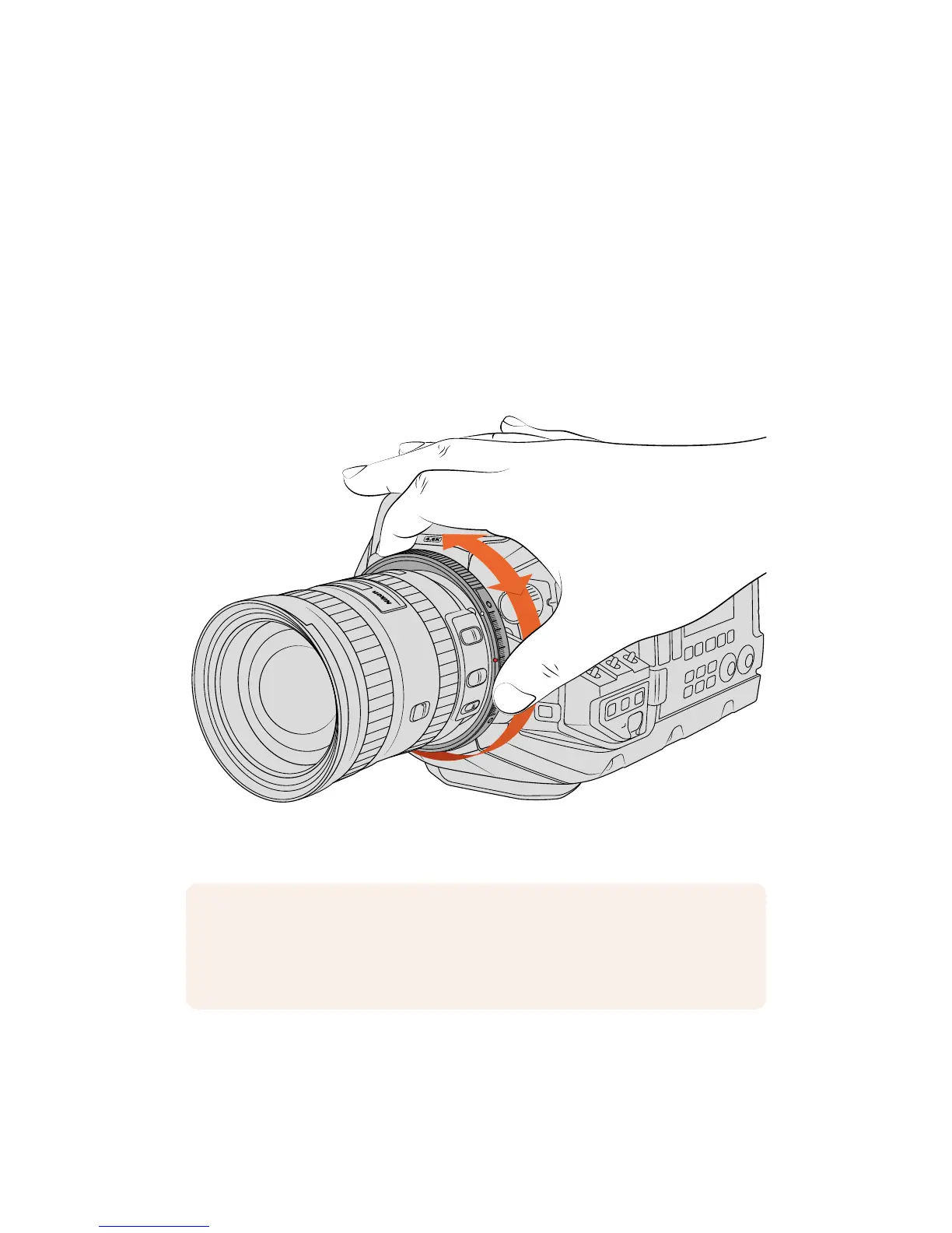 Use URSA Mini Pro F mount's iris adjustment ring to smoothly change the aperture of F mount lenses.