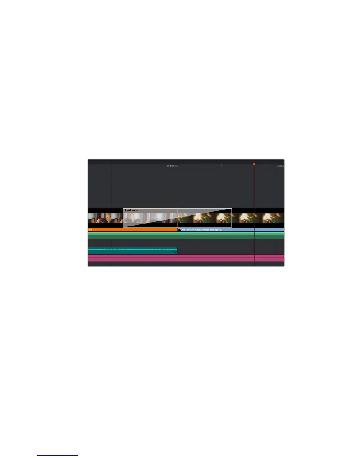 To add a dissolve transition between two clips: