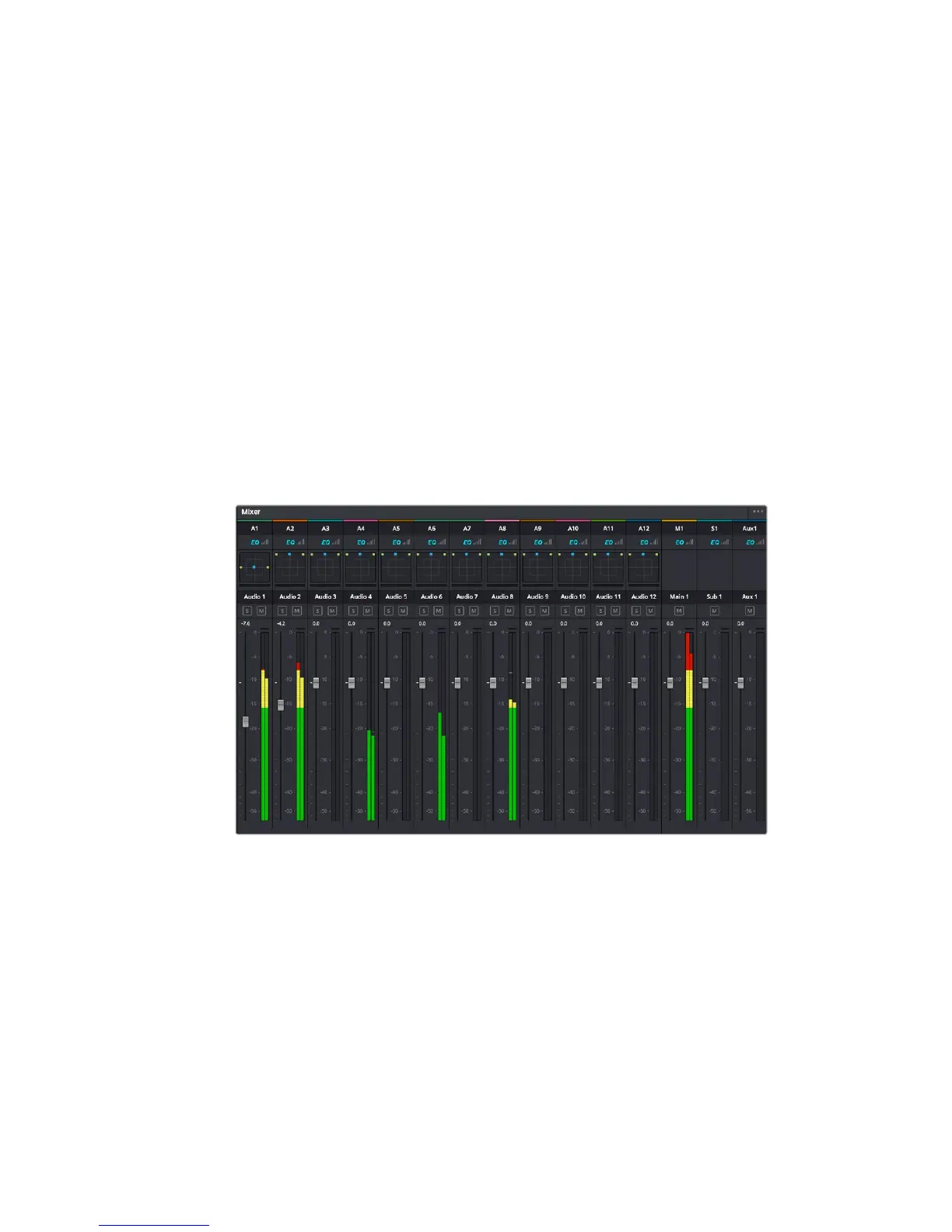Each audio track in your timeline corresponds to an individual channel strip in the Mixer, and by