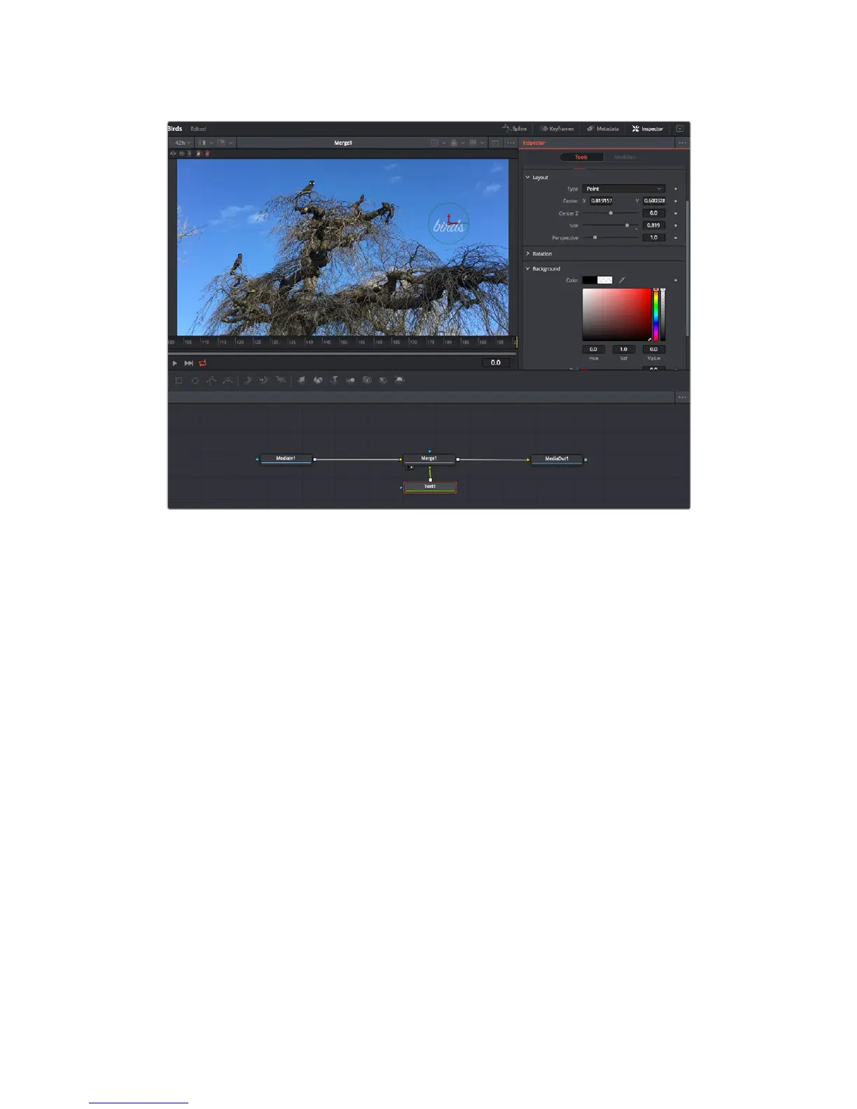 panelisdisplaying the layout tab controls for the text node.