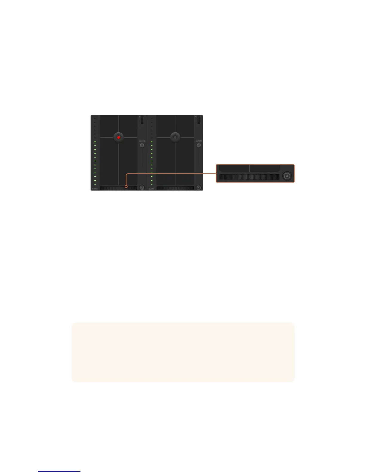 adjustment located at the bottom of each camera controller. Drag the wheel control left or right