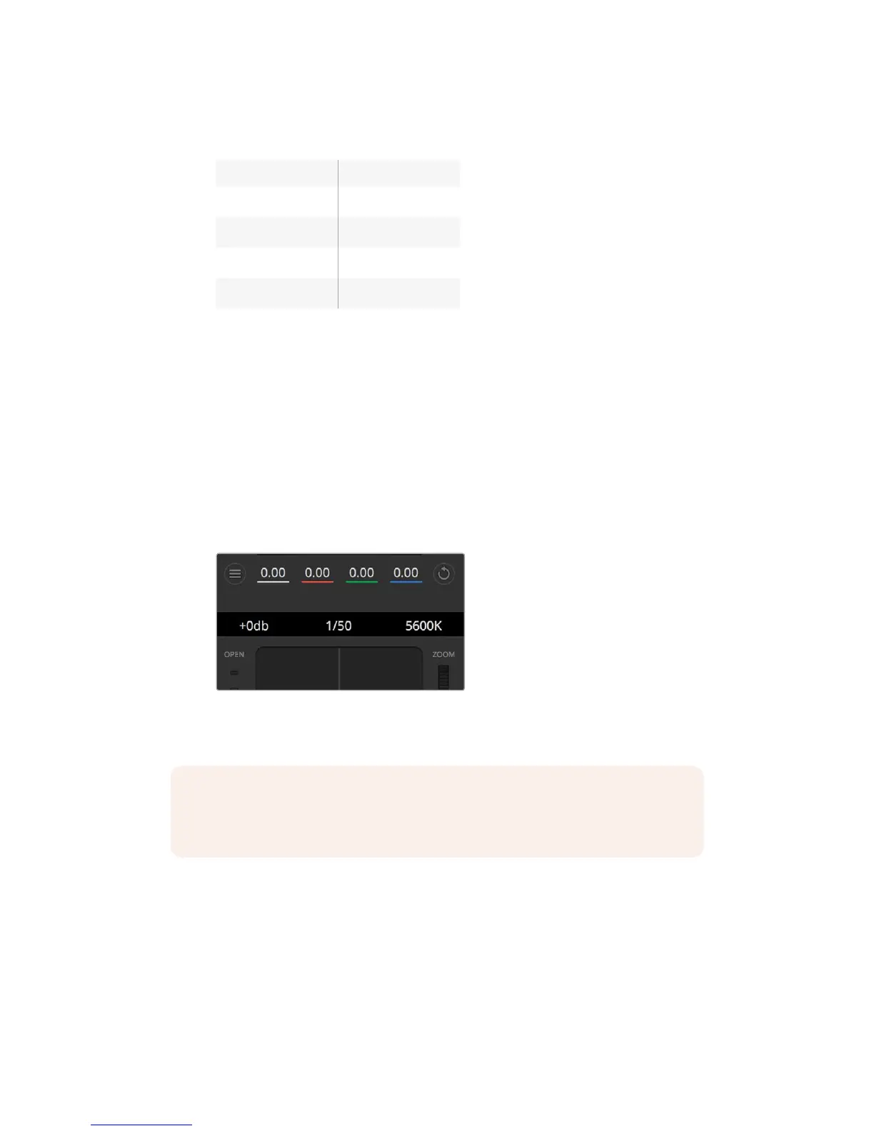 URSAMini 4K the shutter speed will not be displayed on the touchscreen, but will be visible in