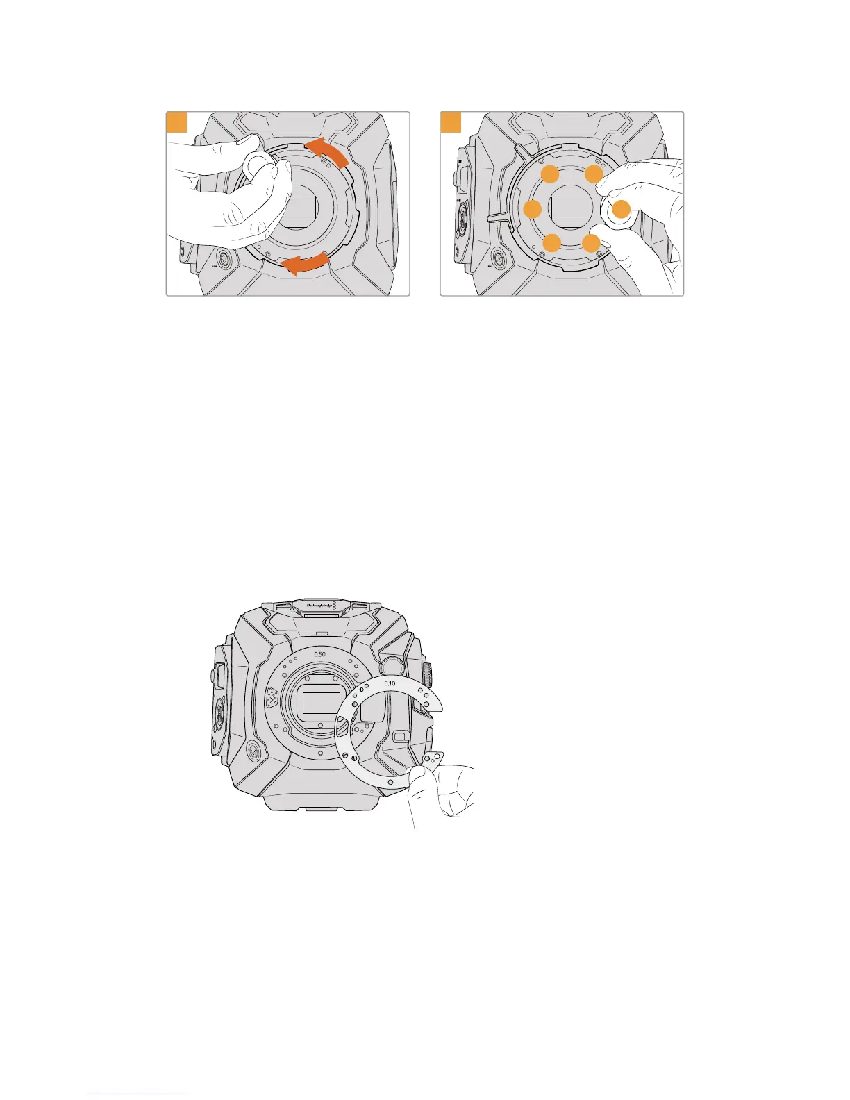 lens mount, and add or remove shims as you would for URSA Mini PL, then replace the mount.