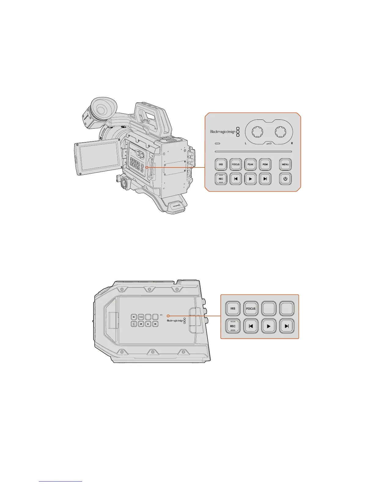 In addition to the inside control panel, your Blackmagic URSA Mini has control buttons on the