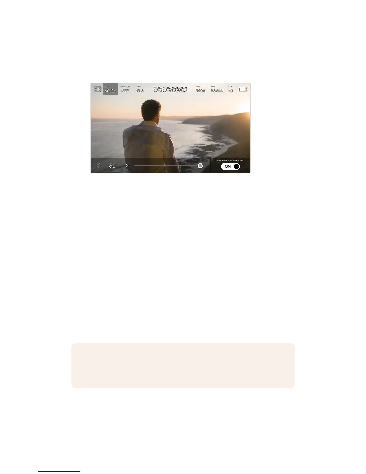 NOTE When 'off speed frame rate' is selected your URSA Mini's audio and video are