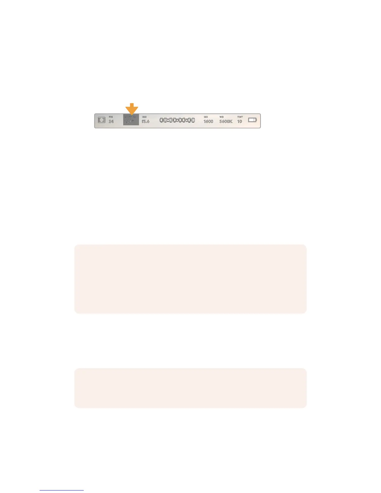 The ‘Shutter’ indicator displays your shutter angle or shutter speed. By tapping this indicator,