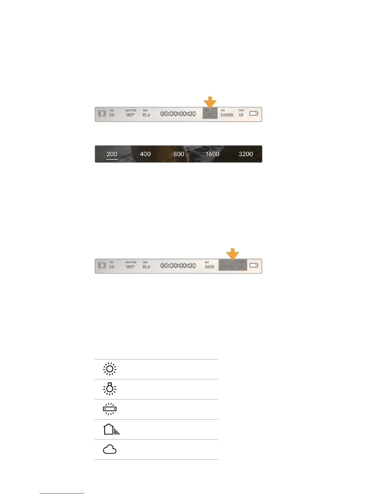 The ‘ISO’ indicator displays your URSA Mini’s current ISO setting, or light sensitivity. Tapping this