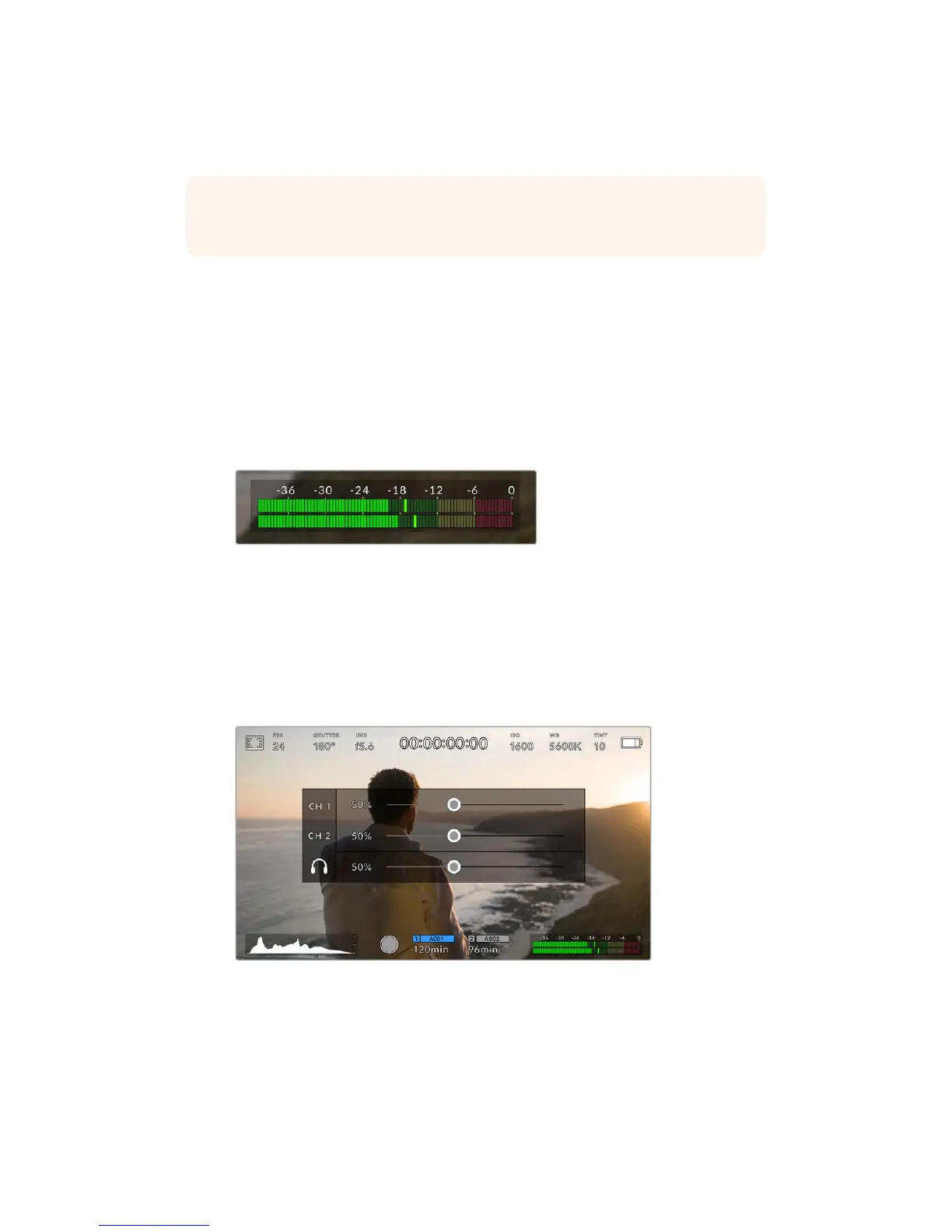 You can tap the audio meter to bring up volume controls for audio input channels 1 and 2,