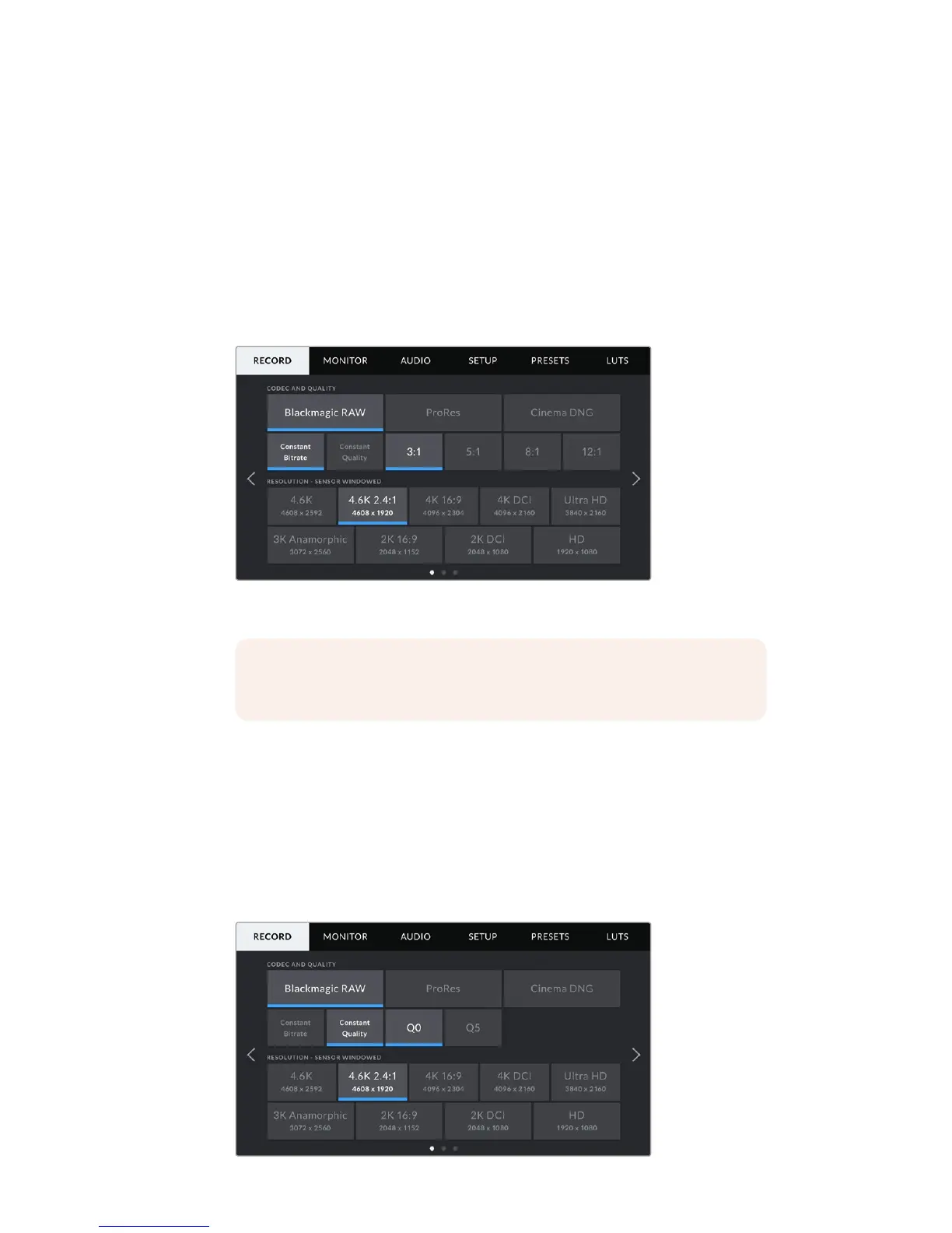 settings which affect the footage saved by your URSA Mini, such as preferred card and detail