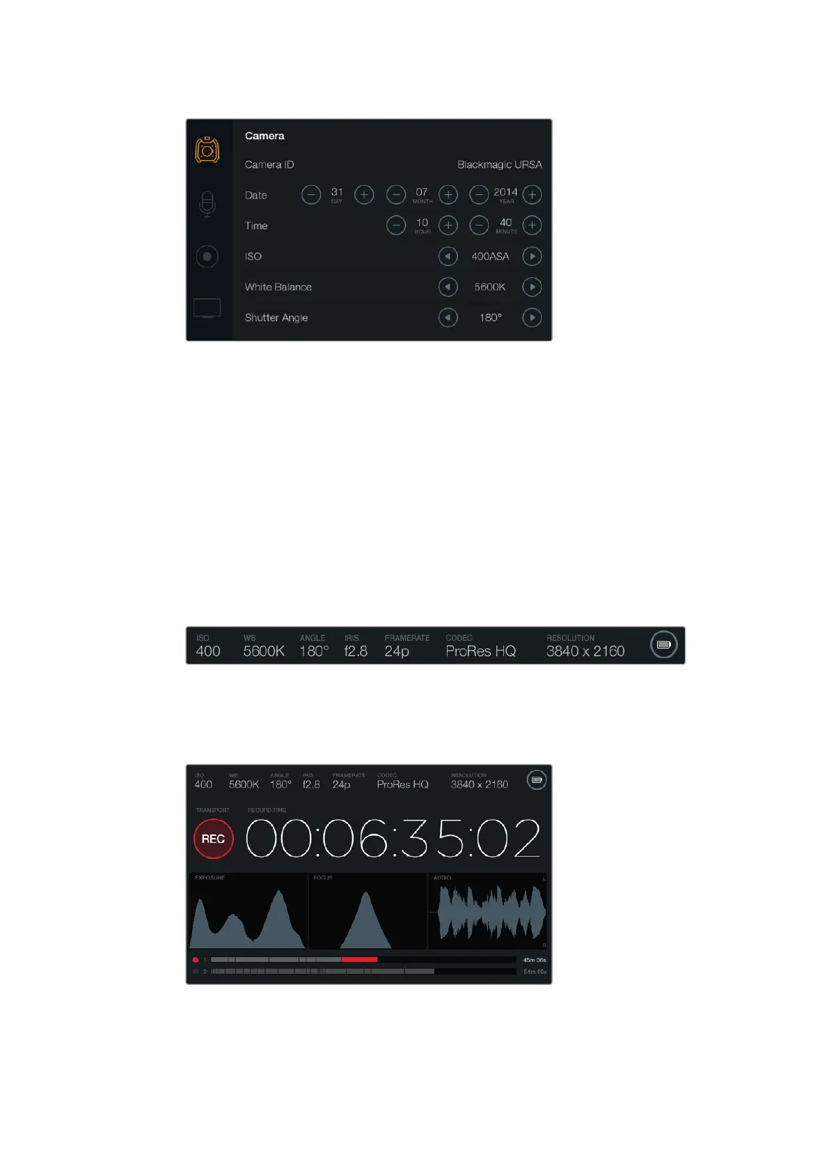 フォーカス合わ せ、露 出の設 定、オー ディオモニタリング をサ ポートします。