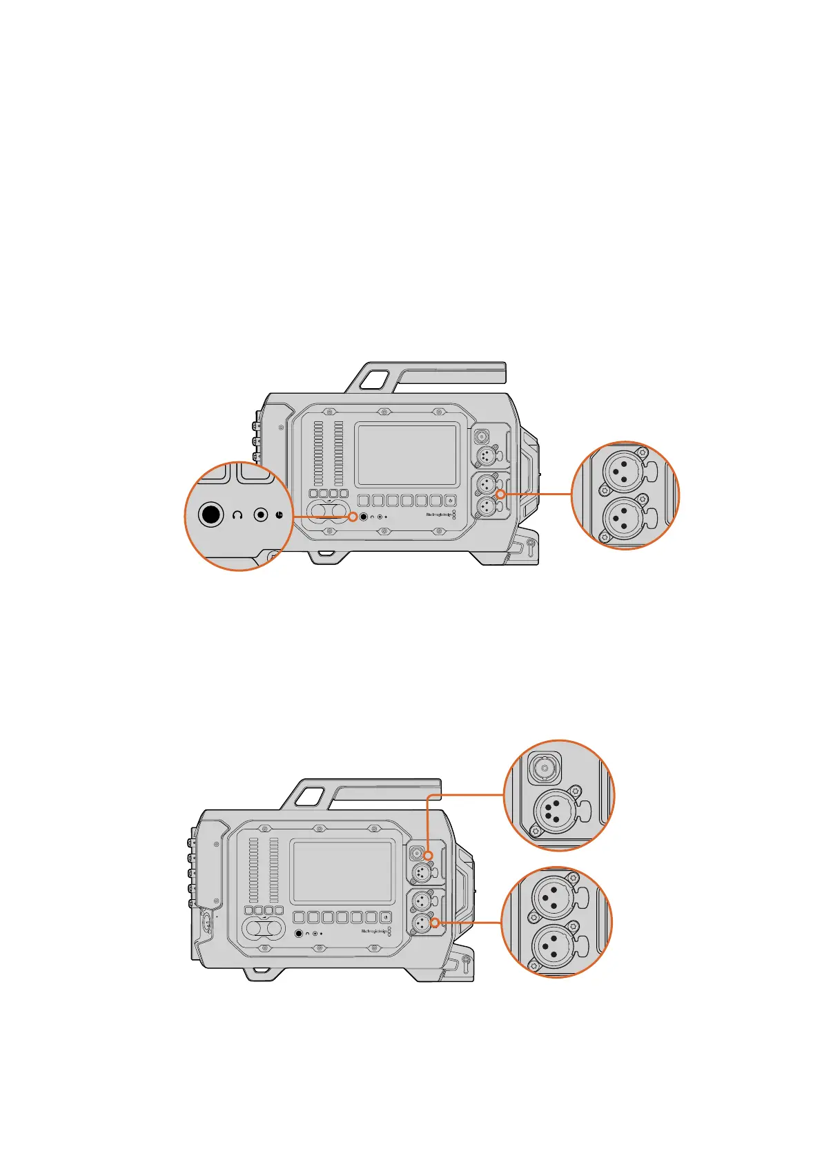 permettent de brancher des accessoires, tels que le Blackmagic URSA Viewfinder.
