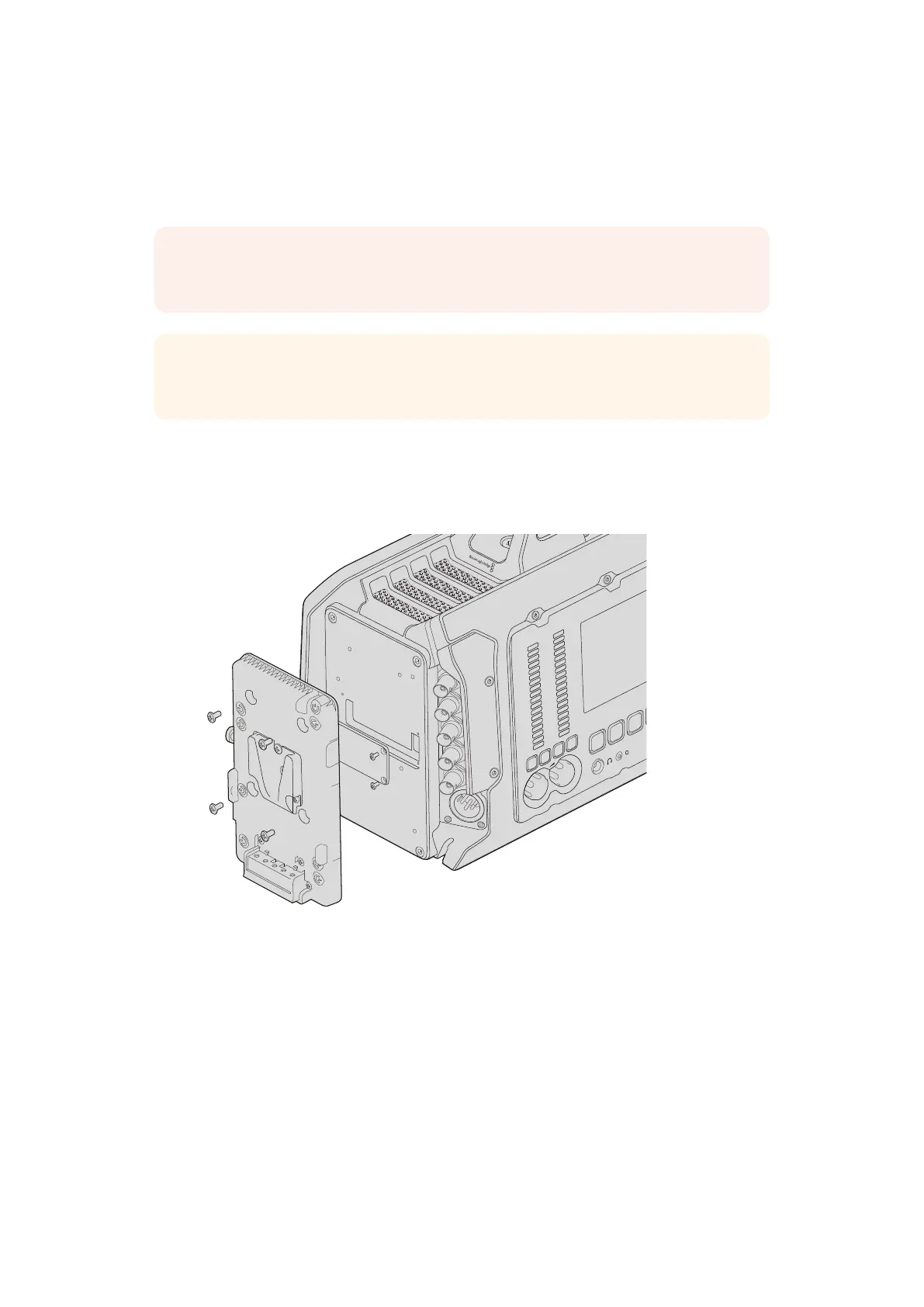 Pour fixer une batterie, il suffit d'installer une fixation Blackmagic V-mount et une batterie V-mount