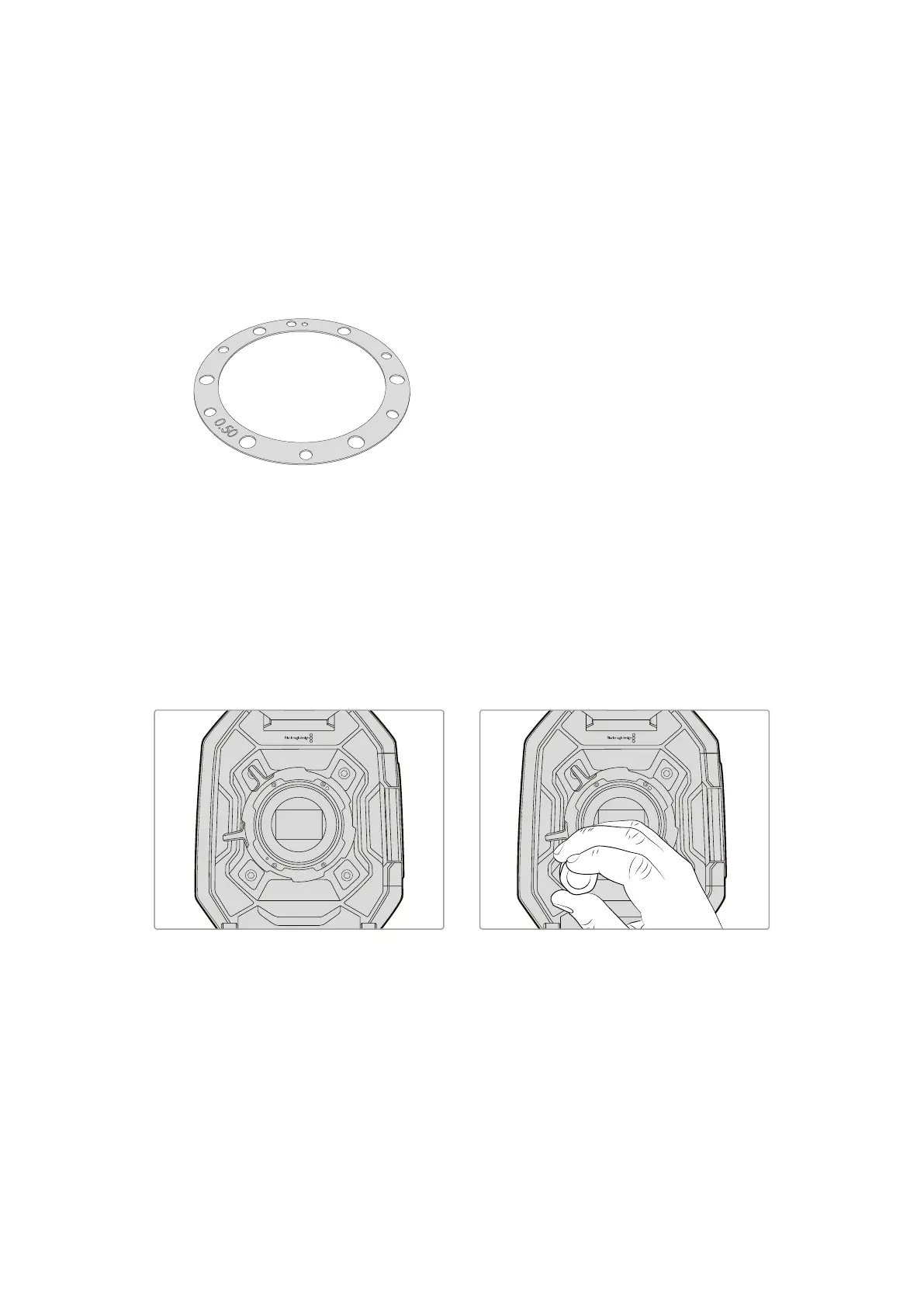 Sie die Dicke der Einstellplättchen je nach dem erforderlichen Backfokus aus.
