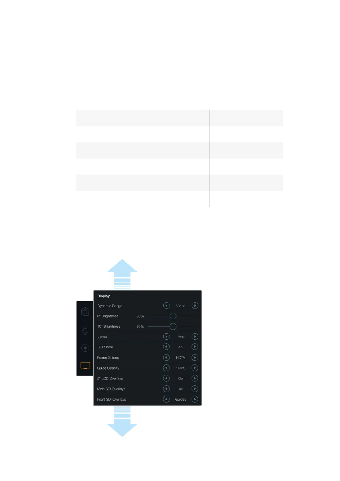 deslizantes para modificar estos ajustes. Deslice el menú para ver más opciones de configuración.
