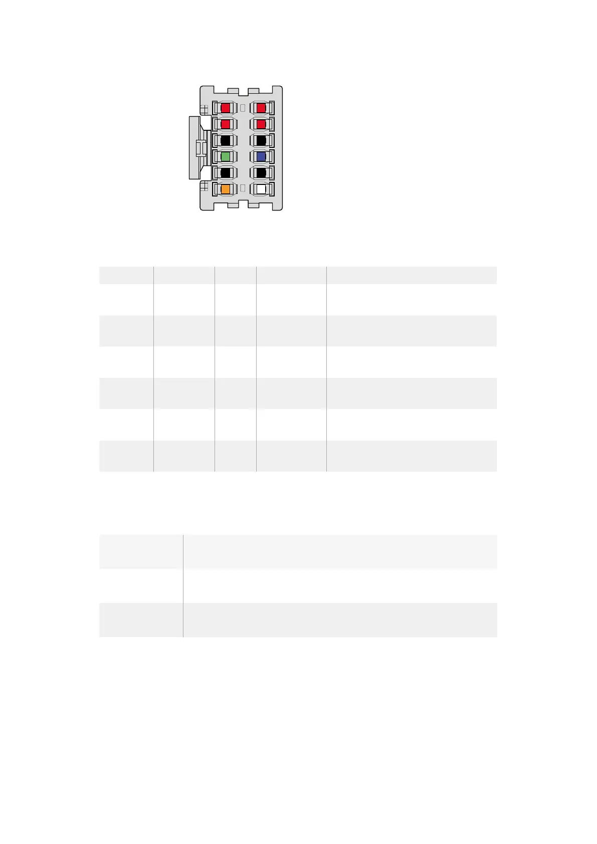 Vista trasera del conector. Consulte la tabla de configuración de