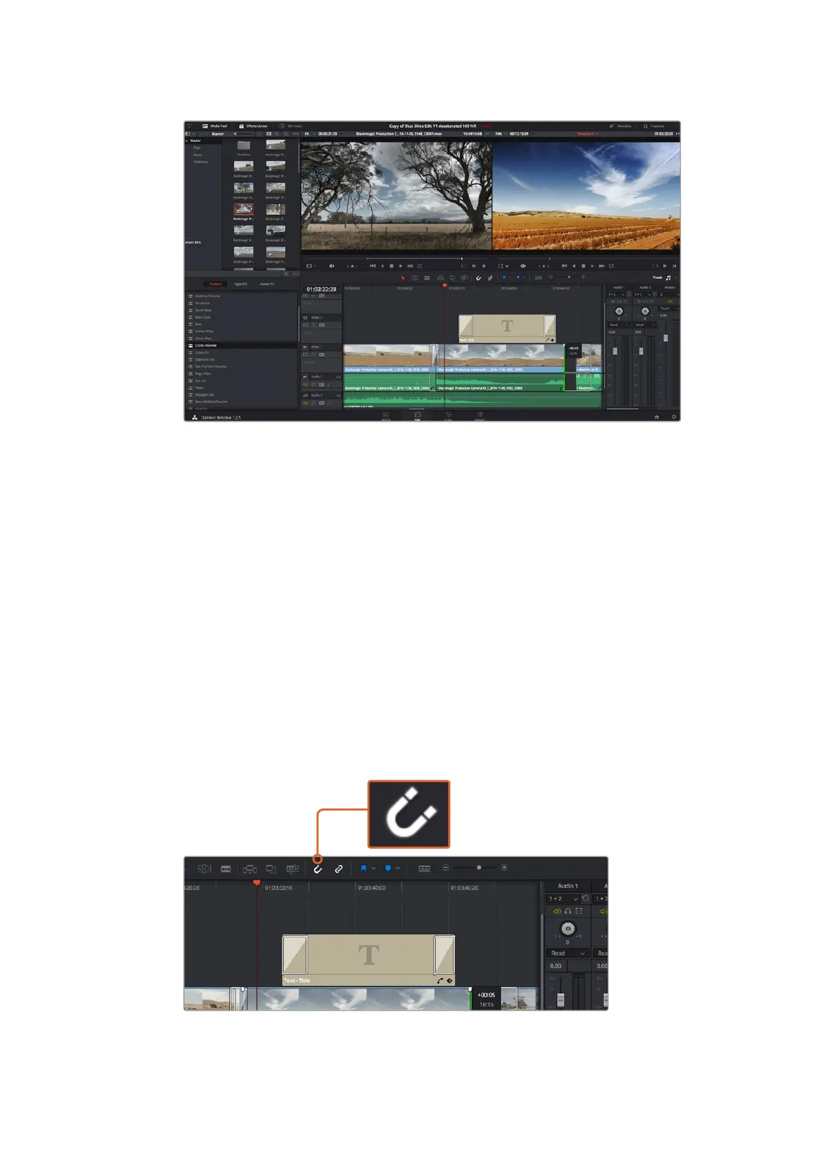 El módulo Edición. El editor de líneas de tiempo permite recortar clips,