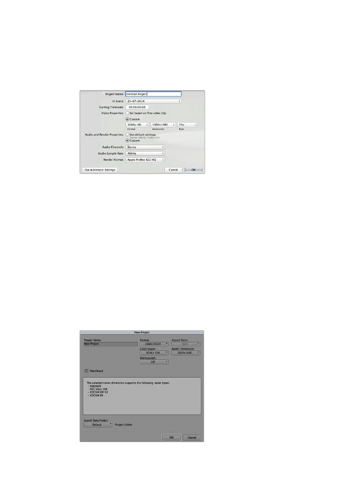 Configuración del proyecto en Final Cut Pro X