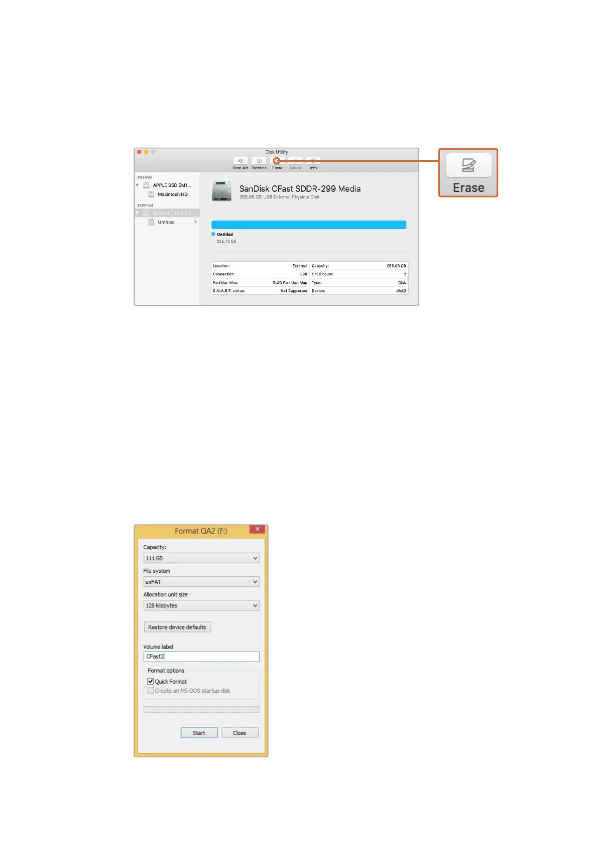Blackmagicdesign URSA - 在Mac os X计算机上格式化Cfast卡; 在Windows计算机上格式化Cfast卡