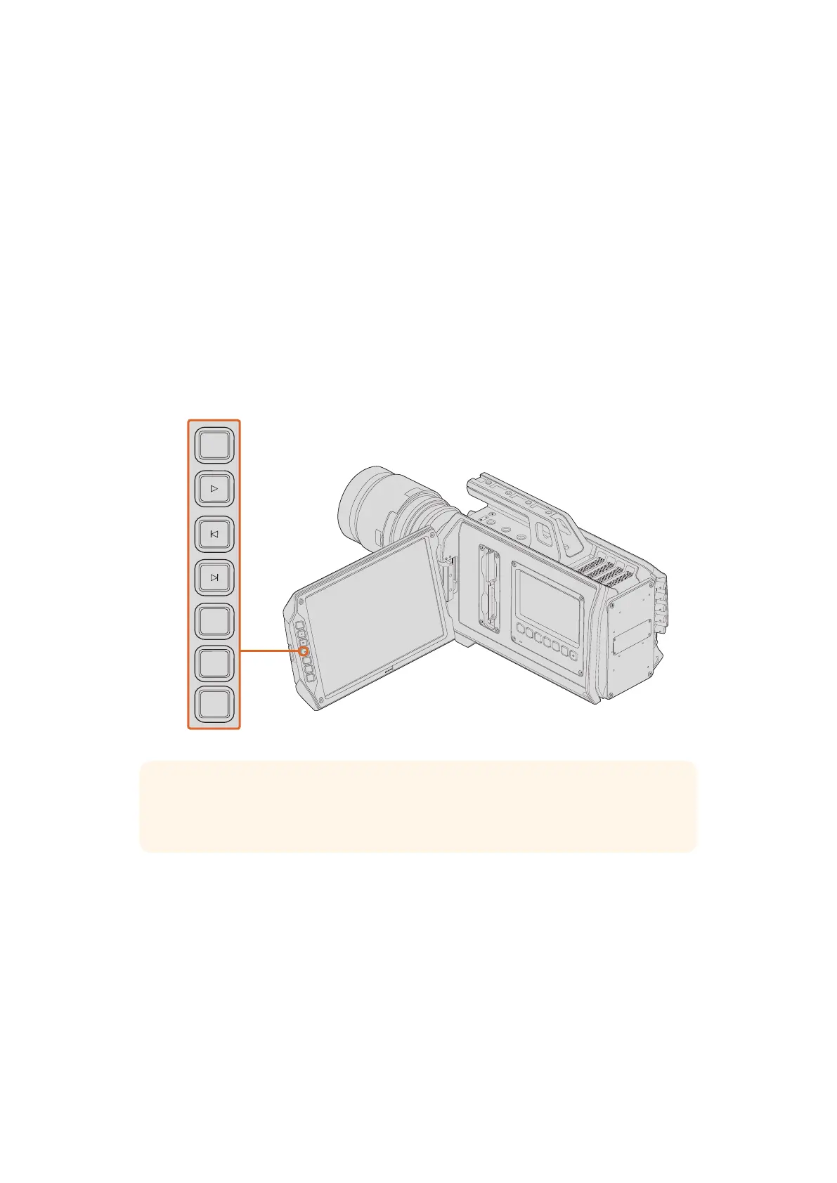 提示 您记录和播放片段所需的所有控制都位于翻折式监视器的外侧边缘,这些控制包括