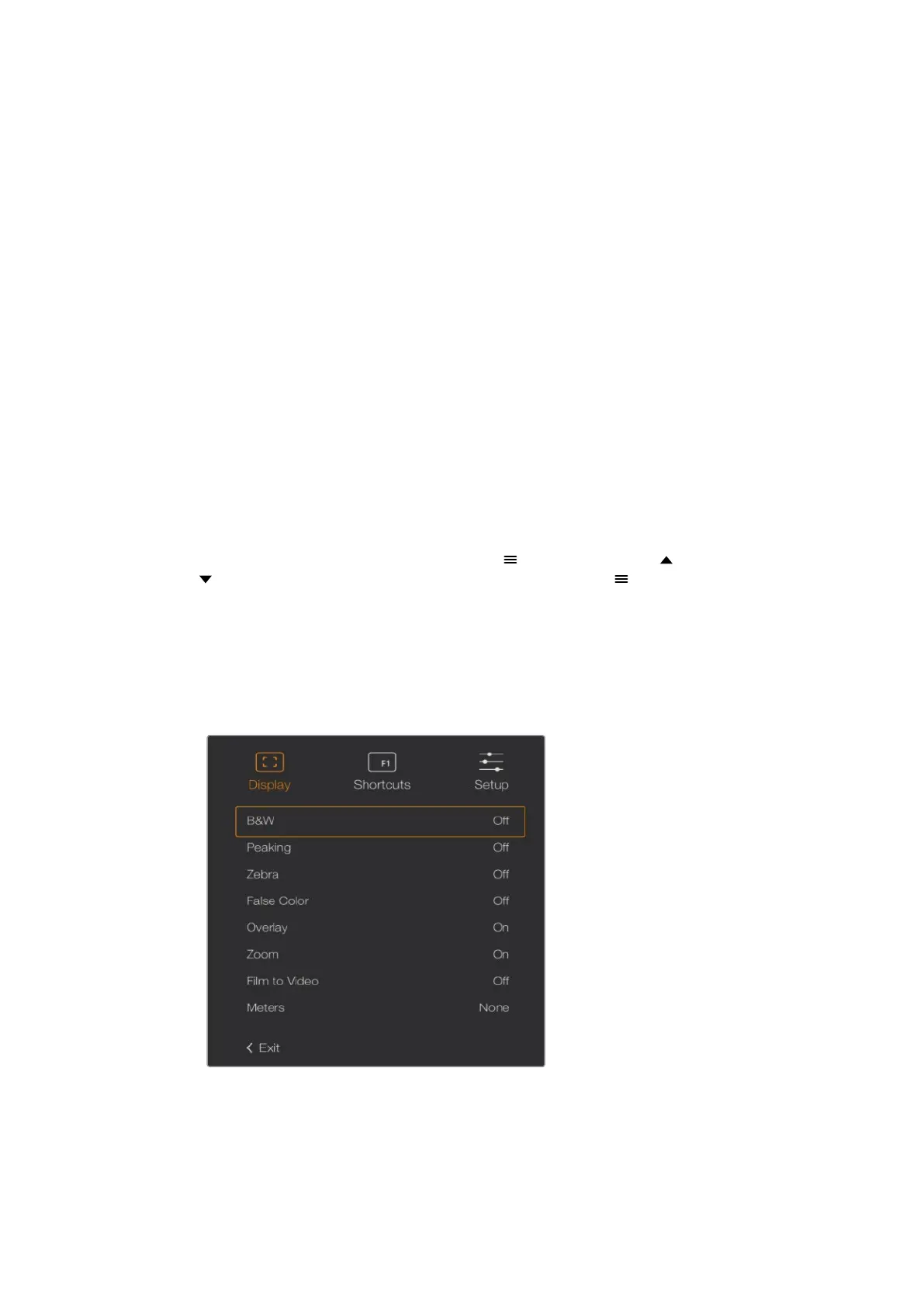 The ‘display’ menu in URSA Viewfinder