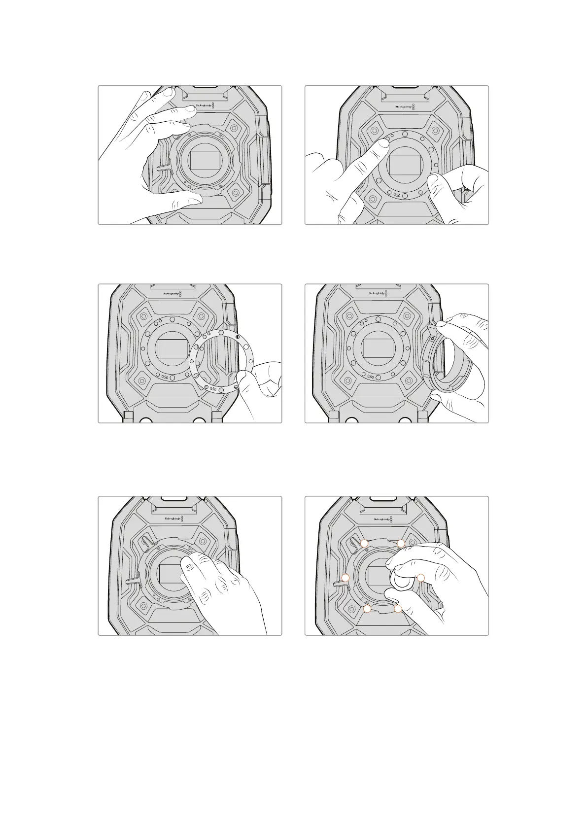 稍微旋紧六枚螺丝直至镜头卡口初步
