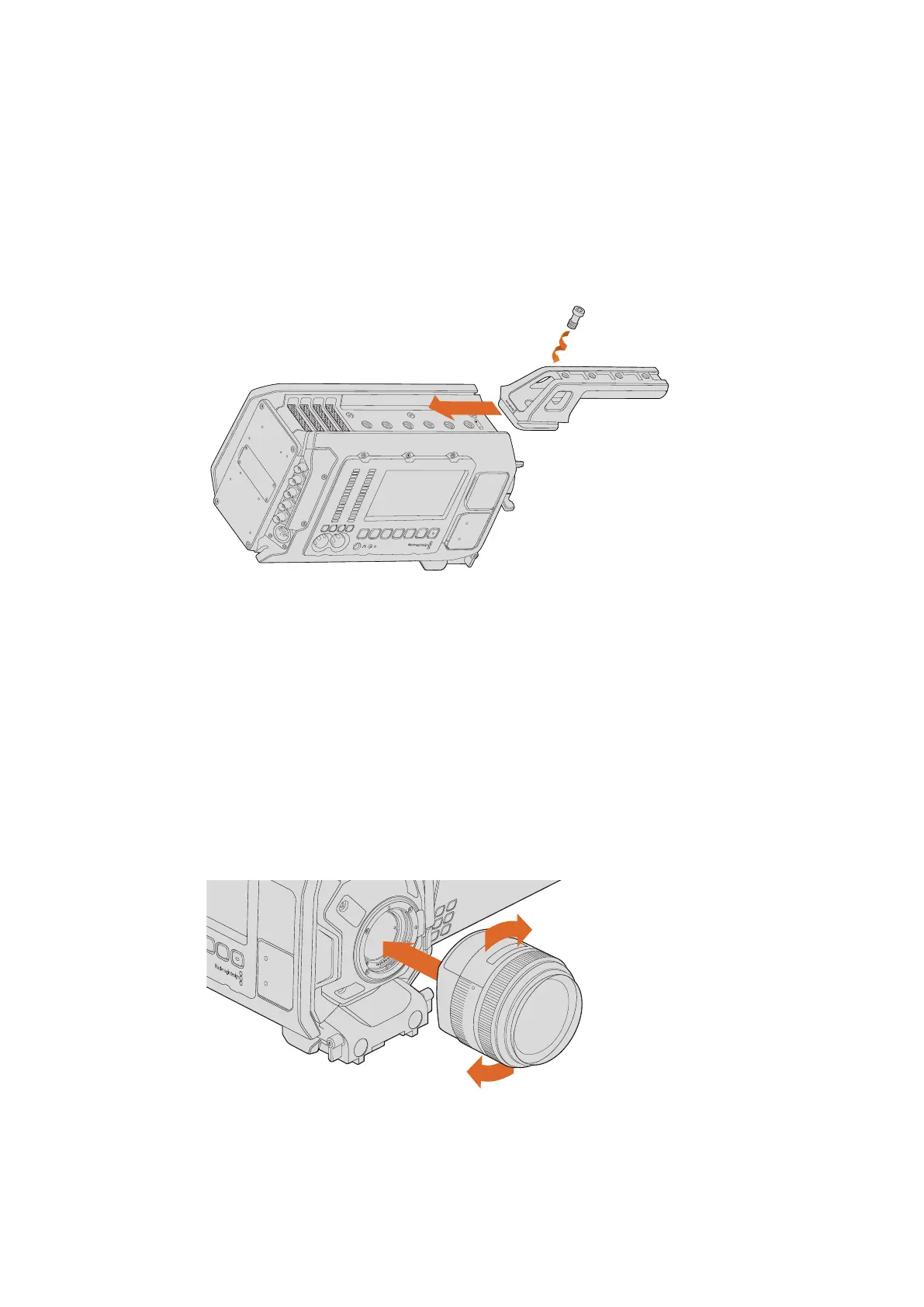 2 카메라 마운트 방향으로 렌즈를 누르고 시계방향으로 렌즈를 돌려 장착합니다