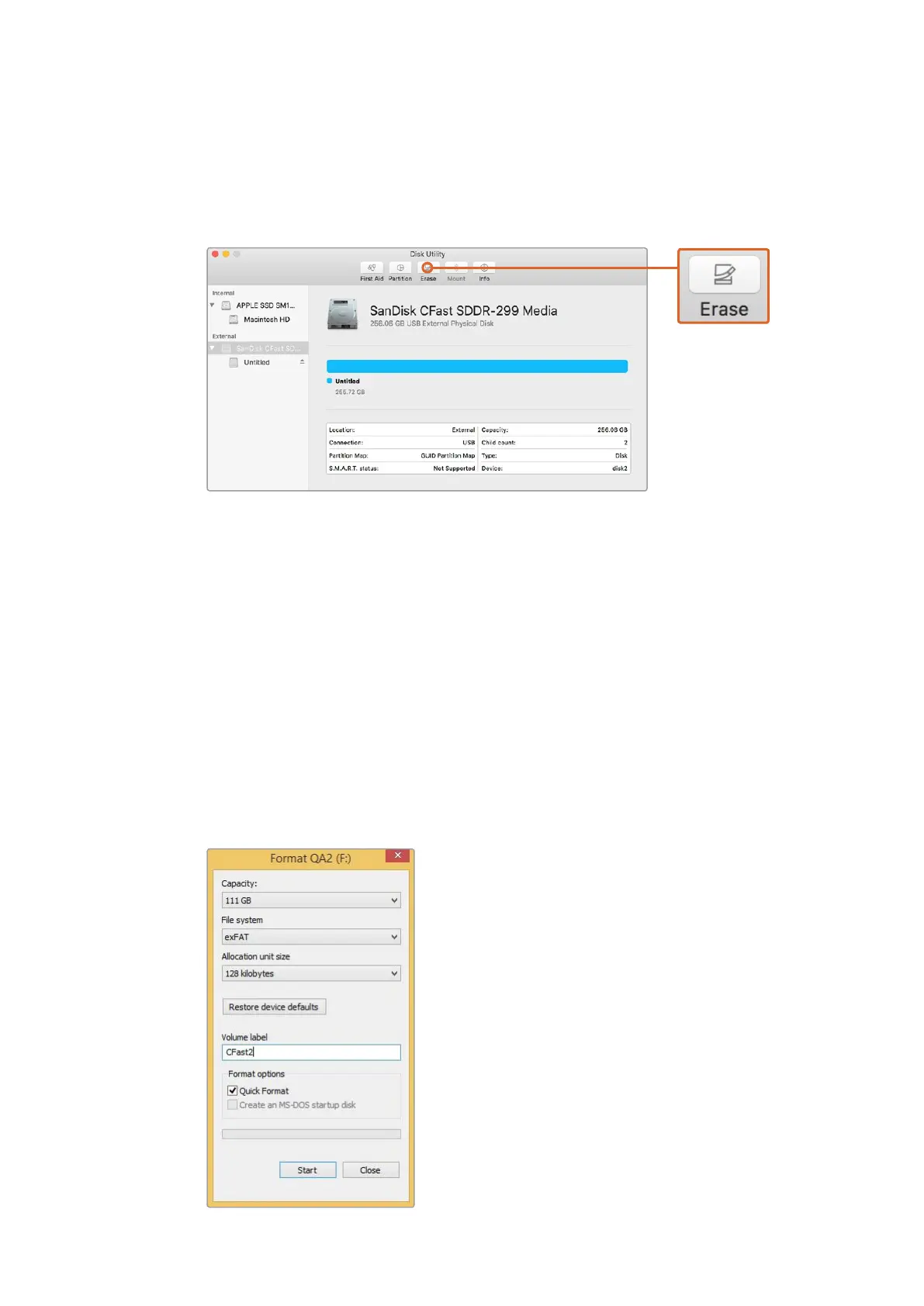 Blackmagicdesign URSA - Mac os X 컴퓨터에서 Cfast 카드 사용하기; Windows 컴퓨터에서 Cfast 카드 사용하기