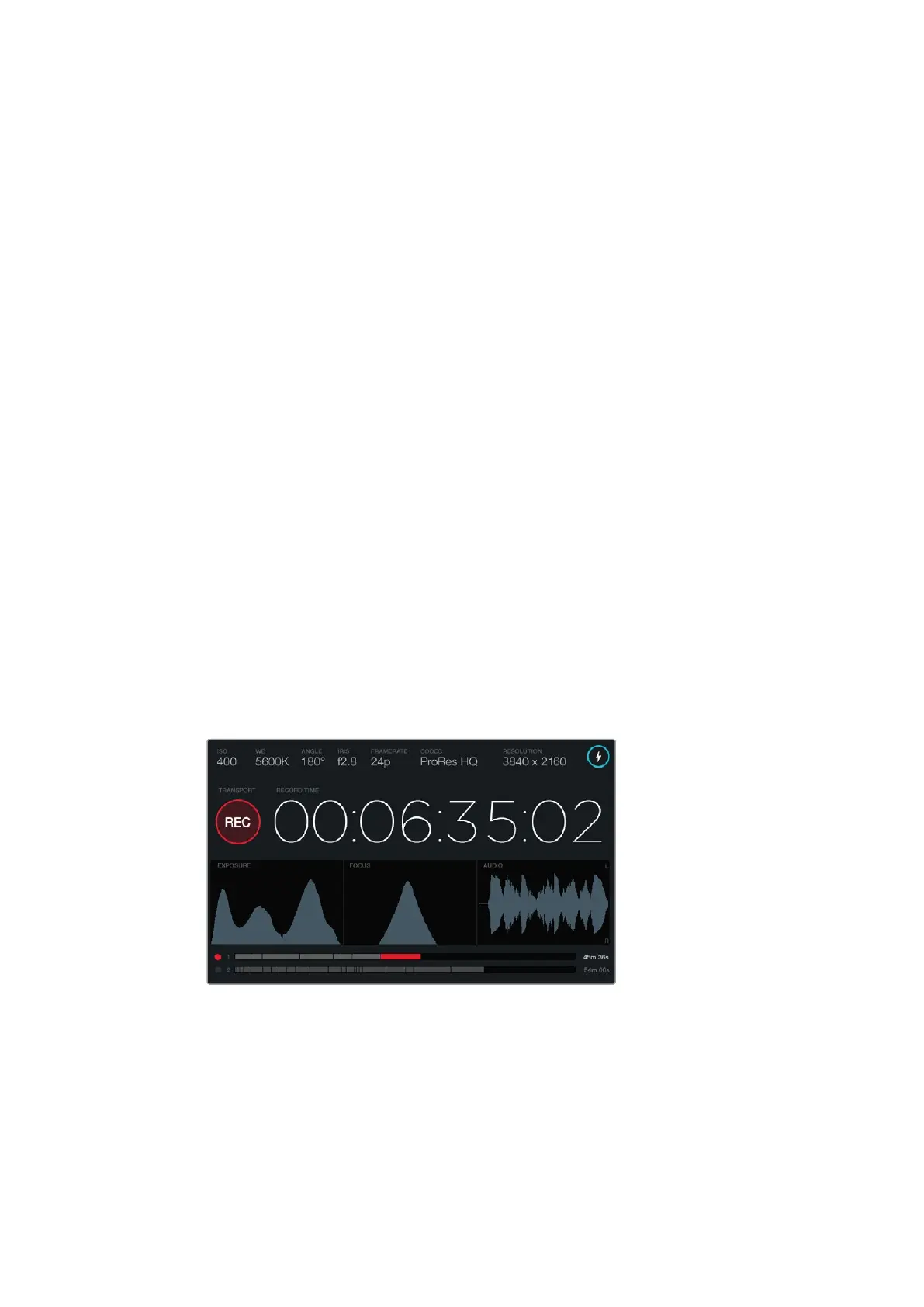 녹화 시간 표시는 클립의 길이를 확인할 수 있고 녹화 및 재생 시 타임코드를 모니터링할 수 있는