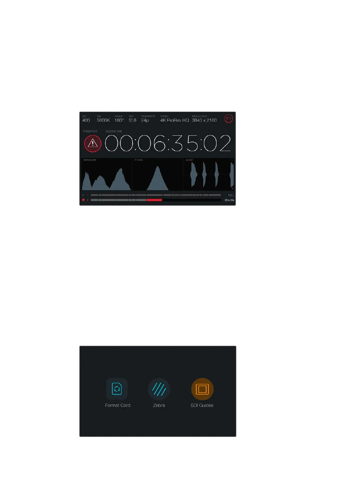 모니터에서 해당 아이콘을 눌러 미터 및 가이드를 표시하거나 숨길 수 있으며