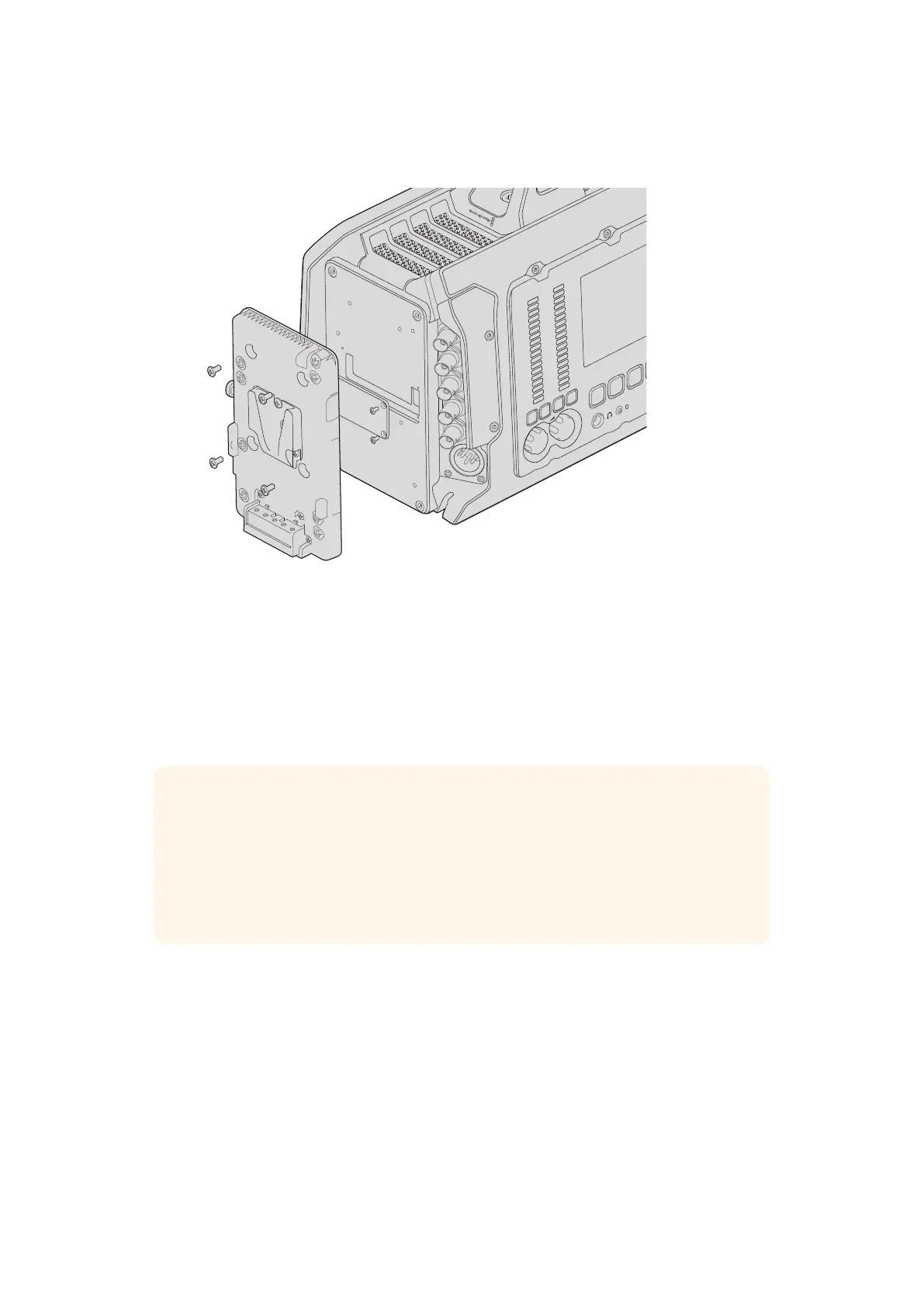Blackmagicdesign URSA - 배터리 장착하기; V-Mount 및 골드 마운트 배터리 장착하기