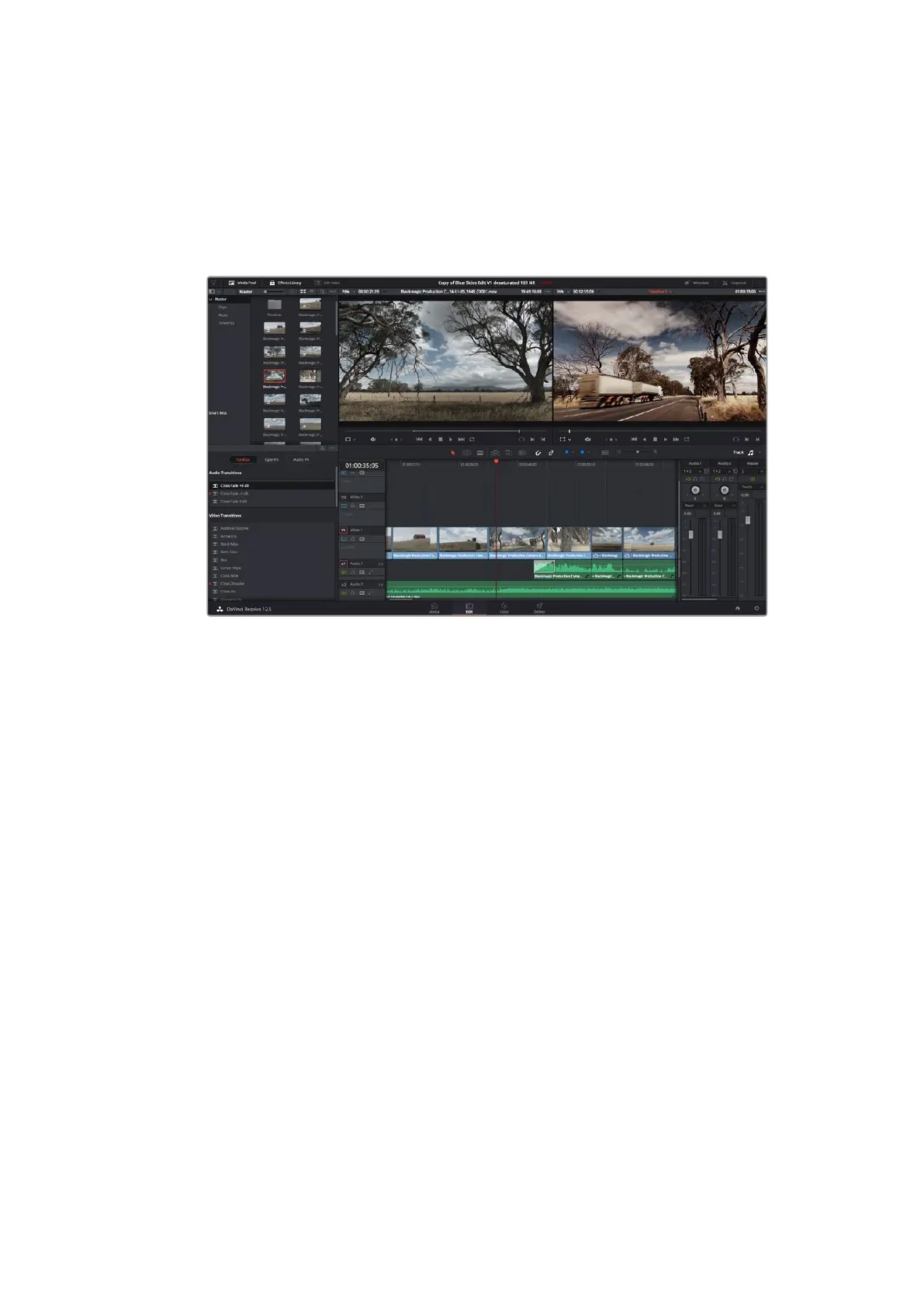 선택한 편집 유형을 사용하는 타임라인에 클립이 나타납니다