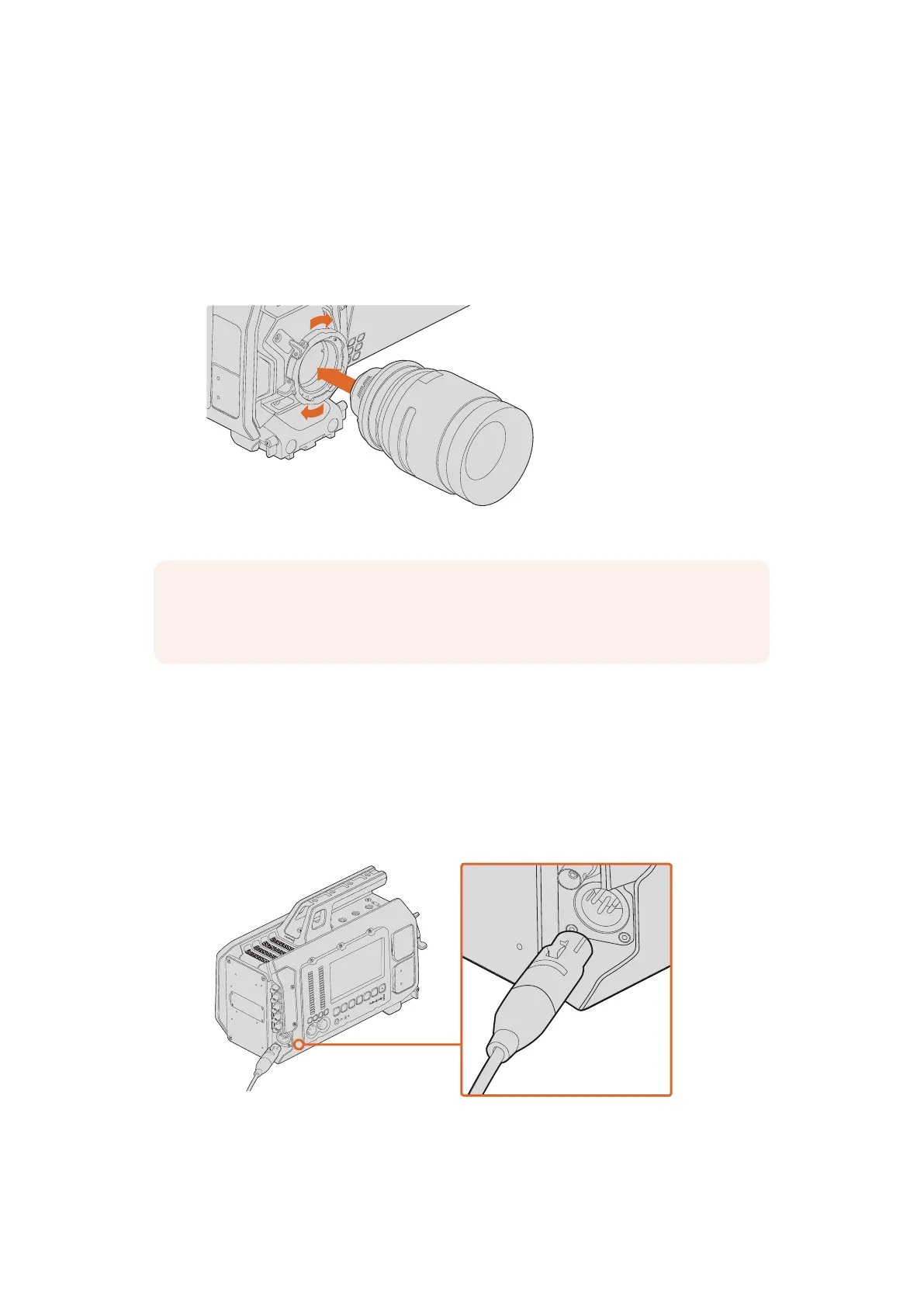 После установки объектива можно подключить питание камеры