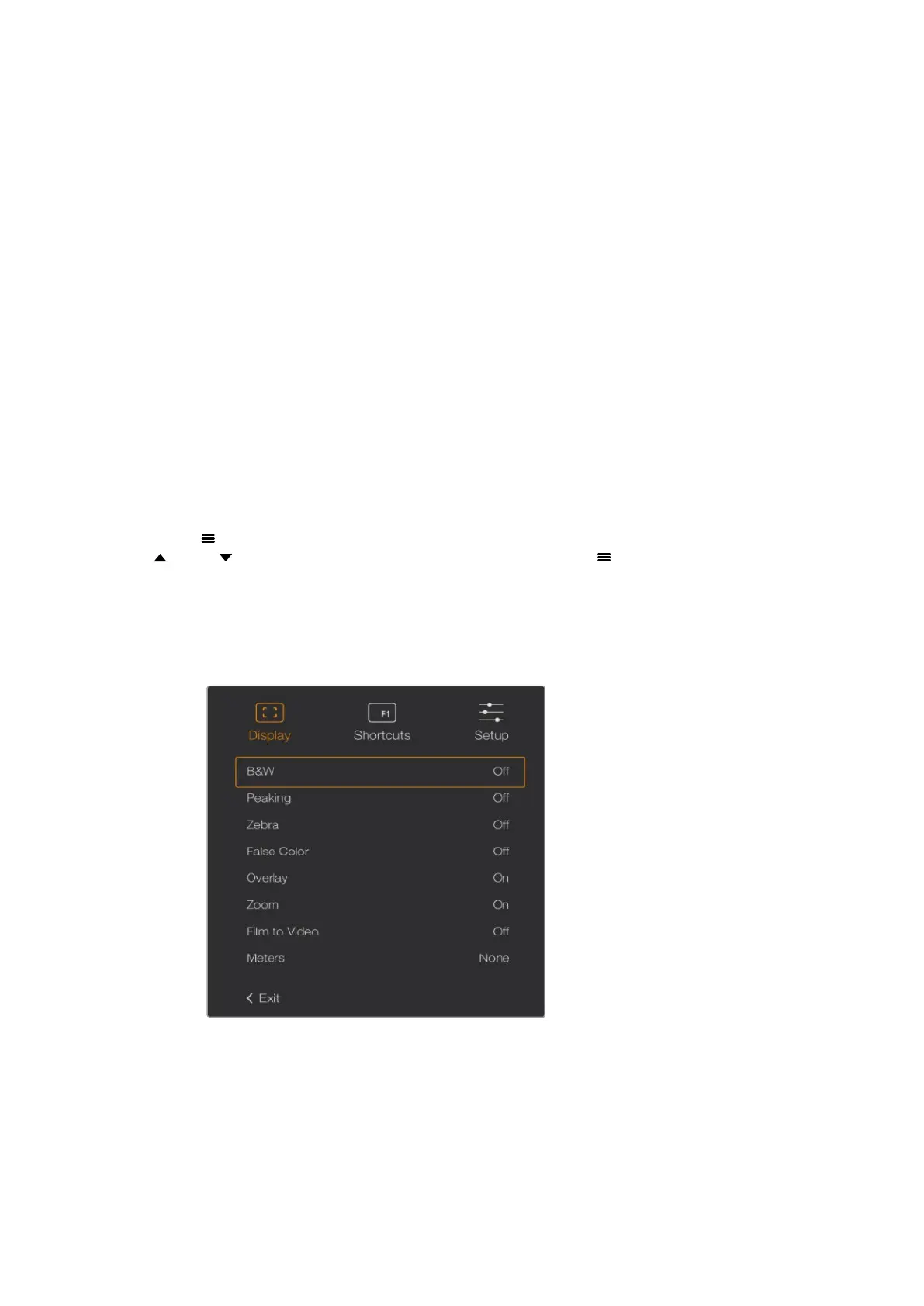 виду нажмите кнопку еще раз. При использовании меню настроек она также