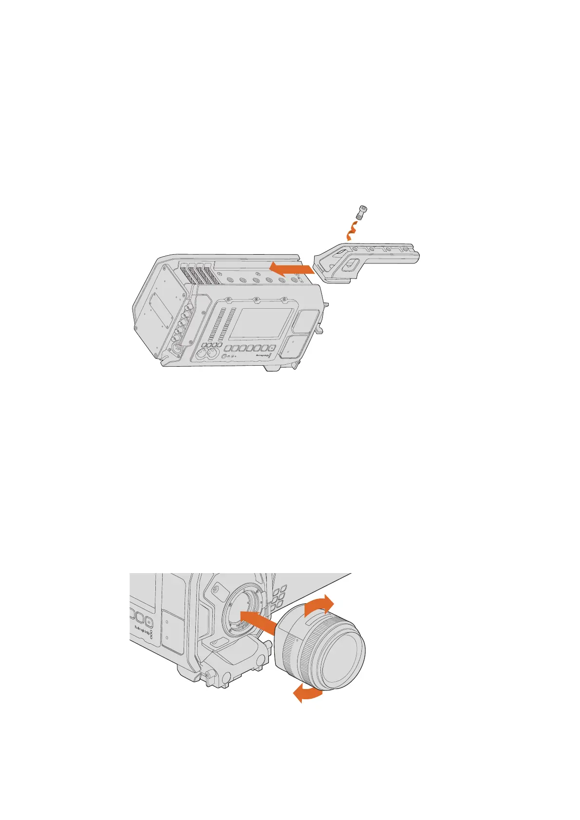 は 、ハンドル を取り付け、レンズをマウントし、電 源を入れるだけで 簡 単に使 用で きます。