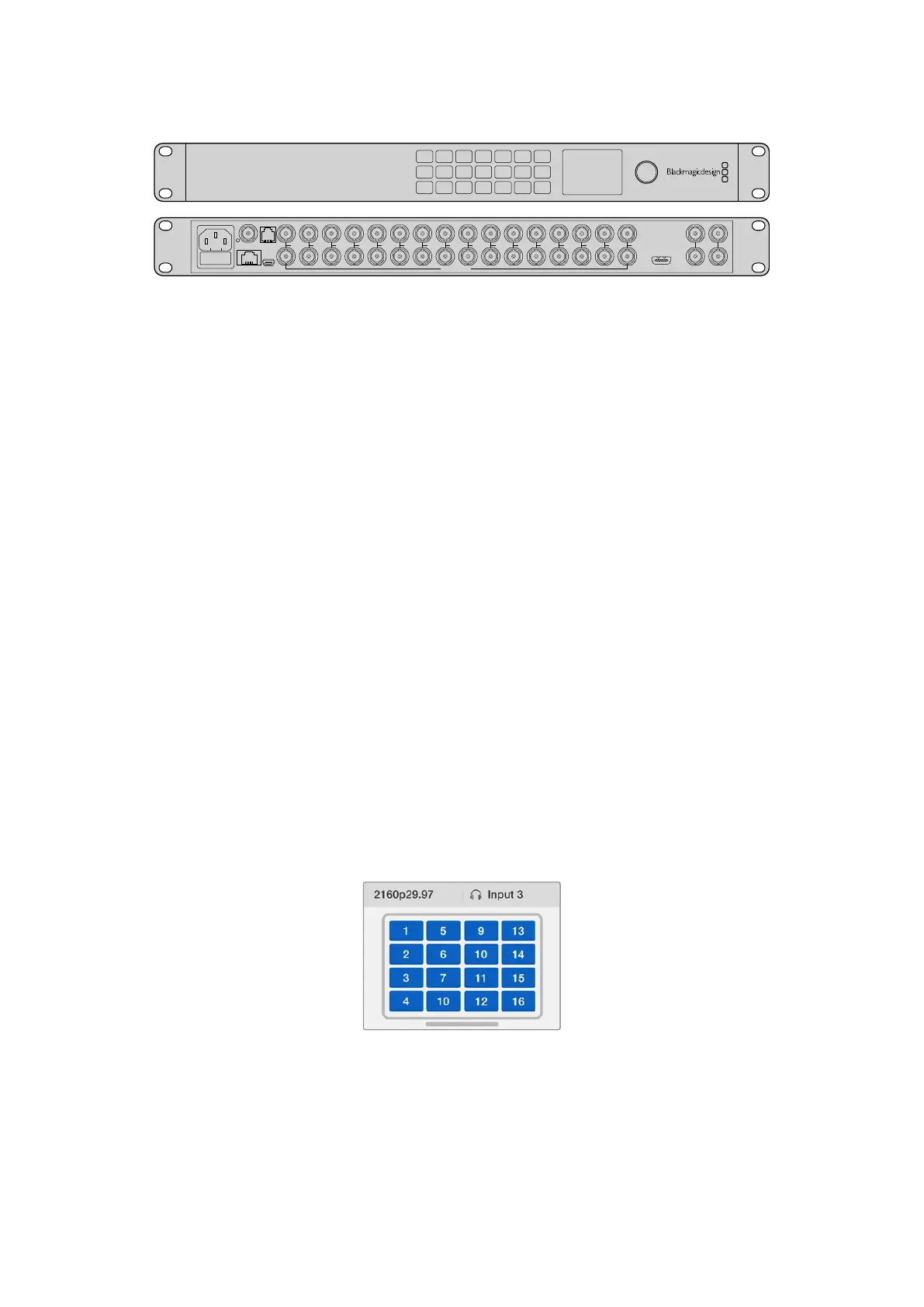 You can operate Blackmagic MultiView 16 using the built in control panel, or remotely via