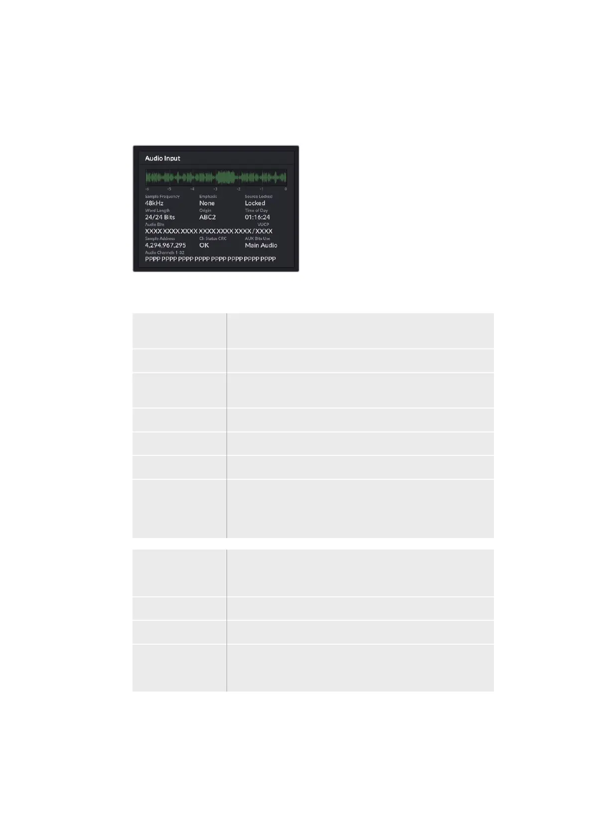 Word Length Shows the bit depth of the audio embedded in the SDI input.