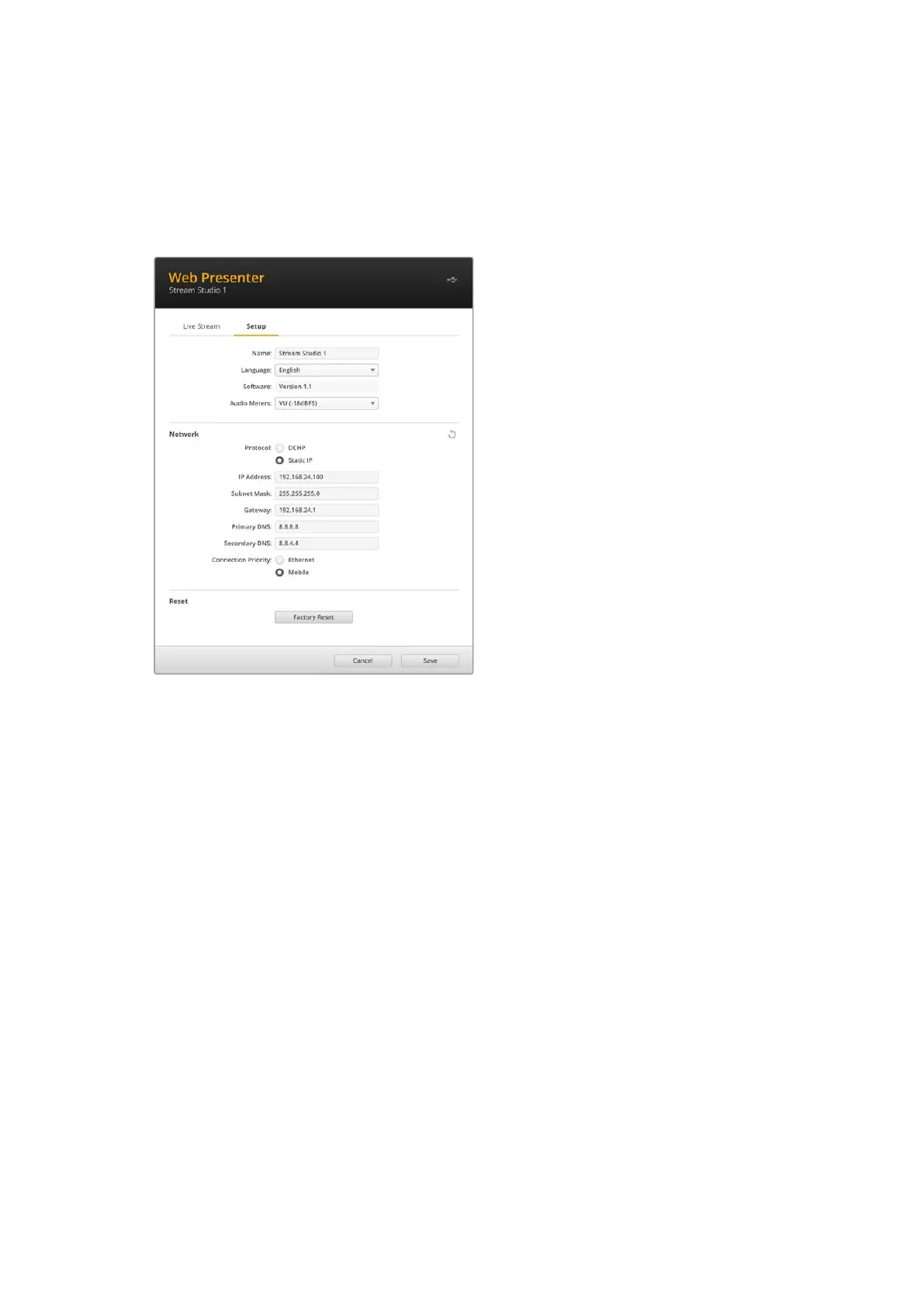 If you want to rename your Web Presenter HD, type a new name into the box and click ‘save’.