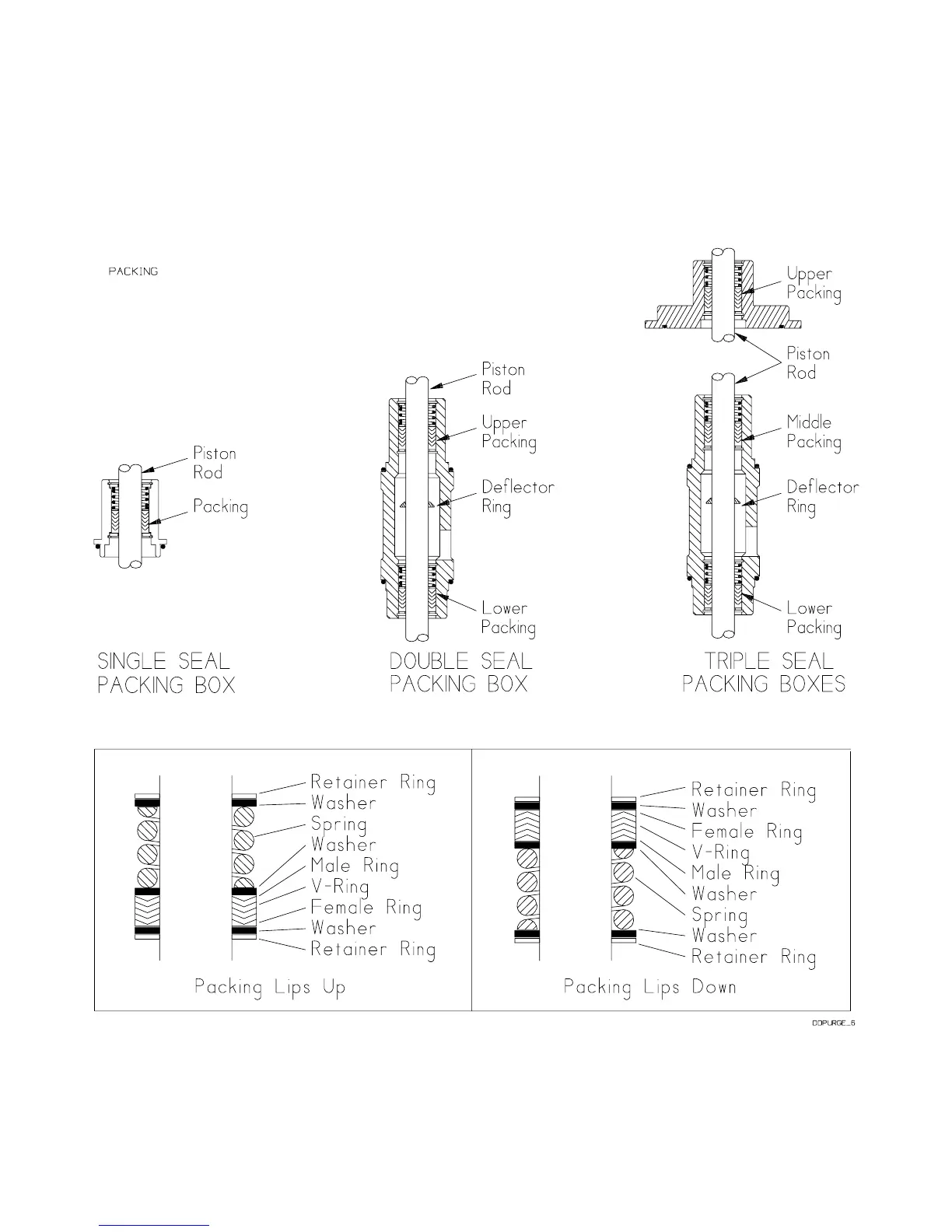 2. Remove the upper and lower retainer ring from the packing box being serviced. Disassemble the packing