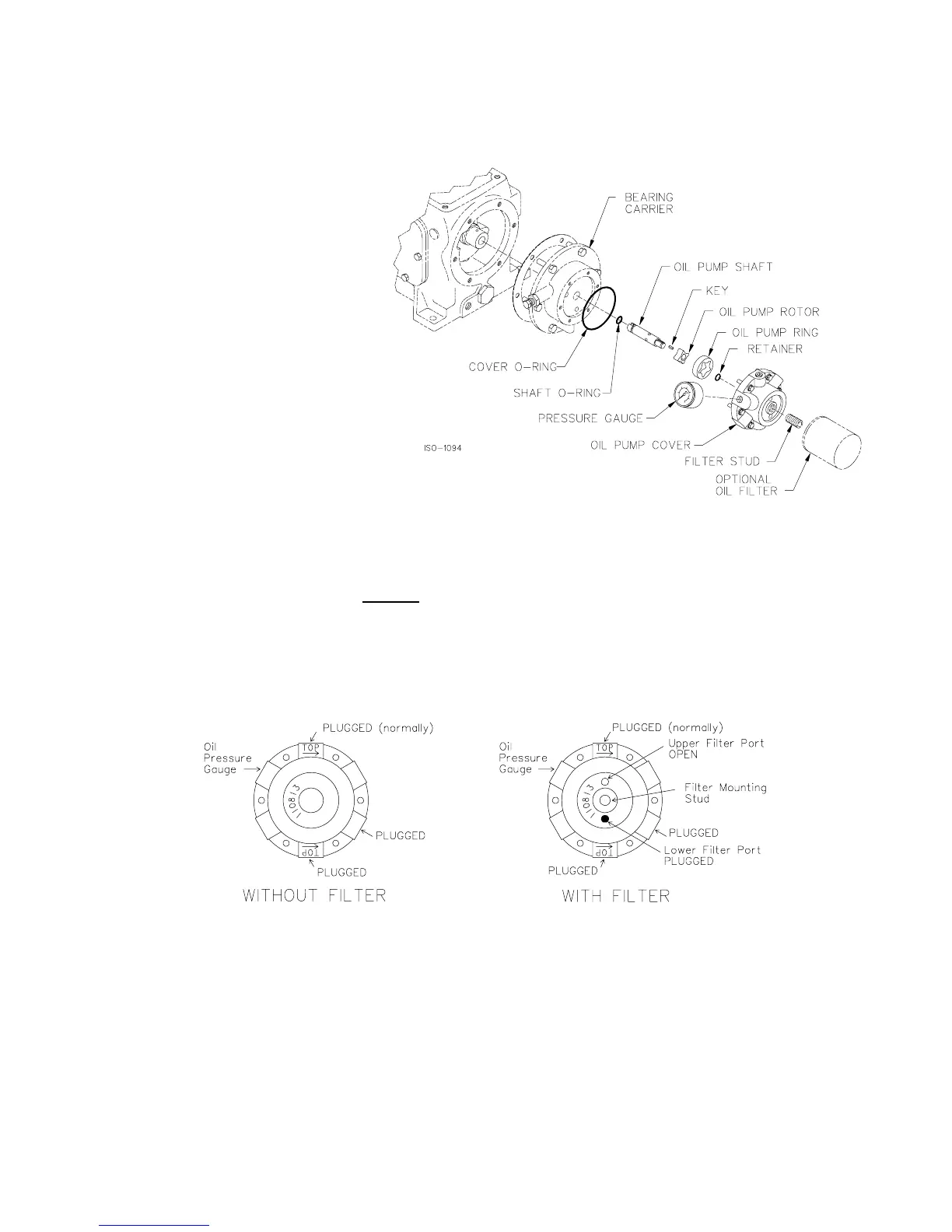 9. Verify that the proper plugs are installed in the oil pump cover per the above sketches.