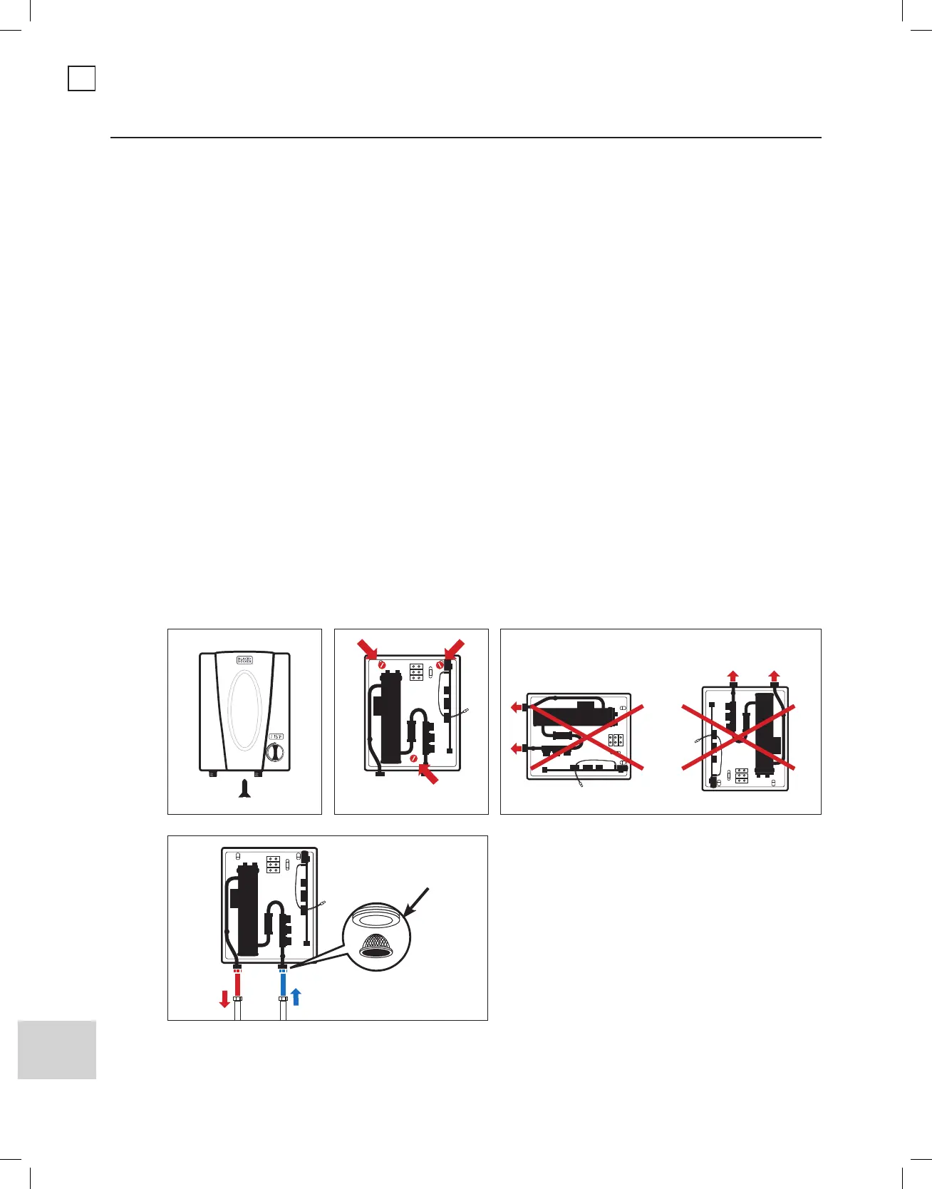 of the unit. Do not install inversely with connections facing up or sideways with connections