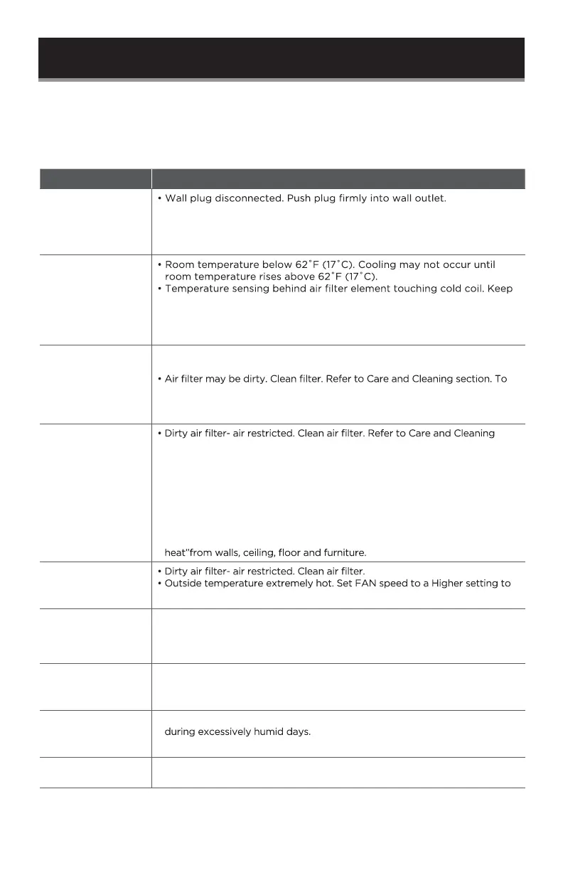 Troubleshoot your problem by using the chart below. If the air conditioner still does