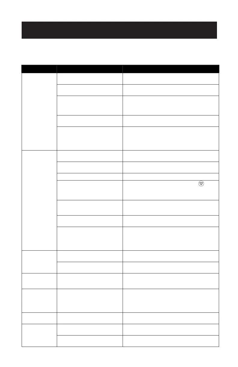 Résolvez votre problème en utilisant le tableau ci-dessous. Si le déshumidicateur