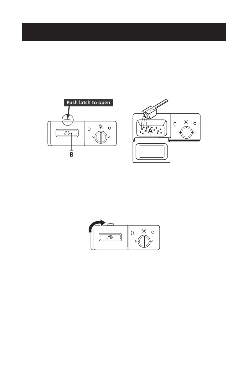 The dispenser must be refilled before the start of each wash cycle. Follow the
