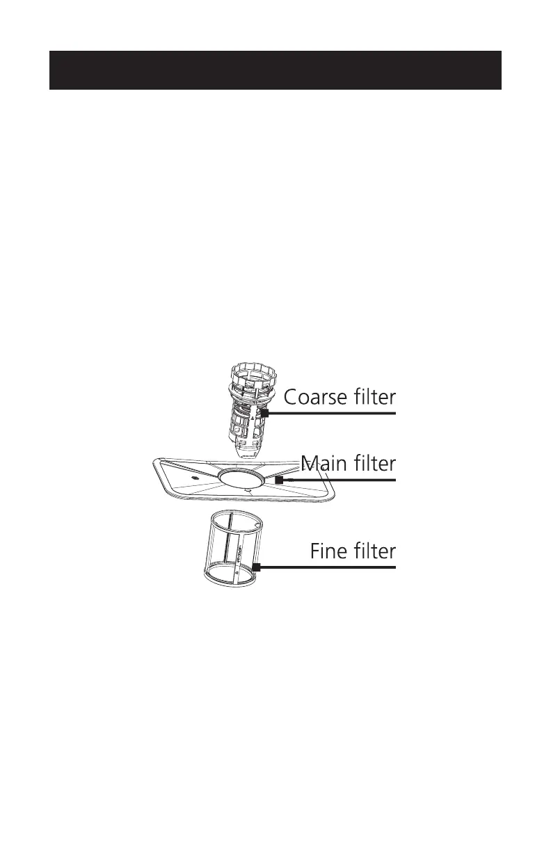 drain are trapped in the coarse filter. To remove the items caught by the filter, gently