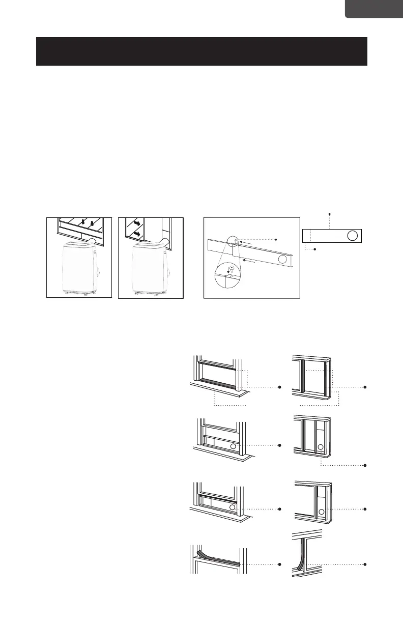 NOTA: · Si la abertura de la ventana es inferior a 27,5” (70 cm), la longitud mínima del kit