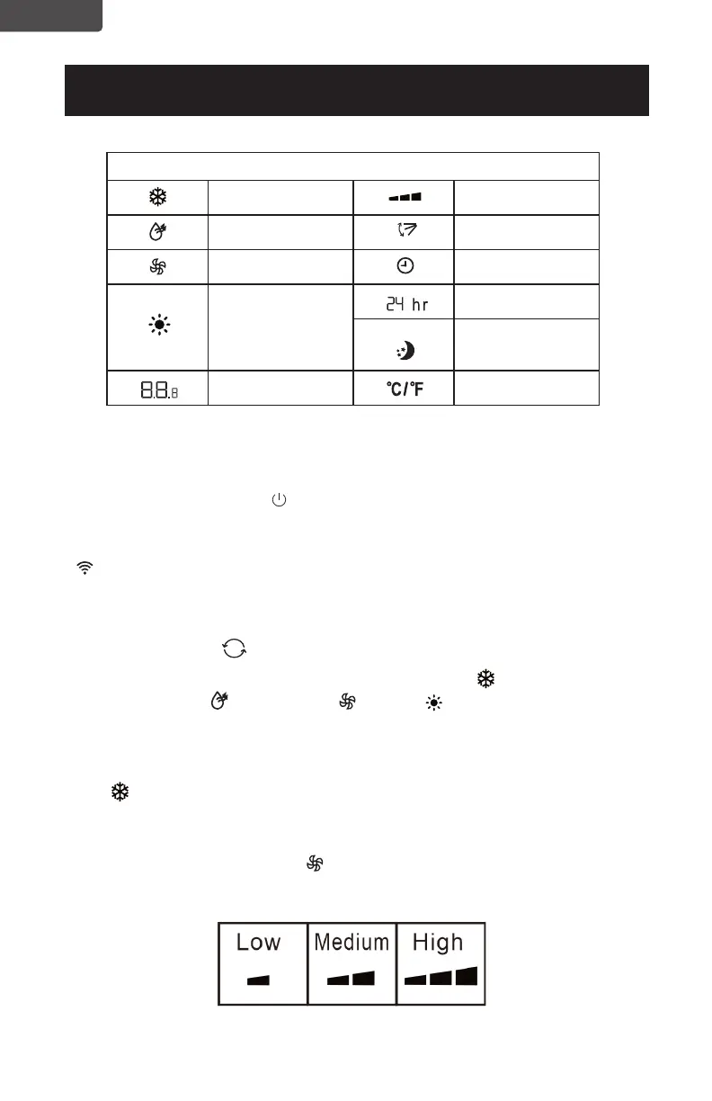 • Presione el botón de velocidad del ventilador para seleccionar baja, media o