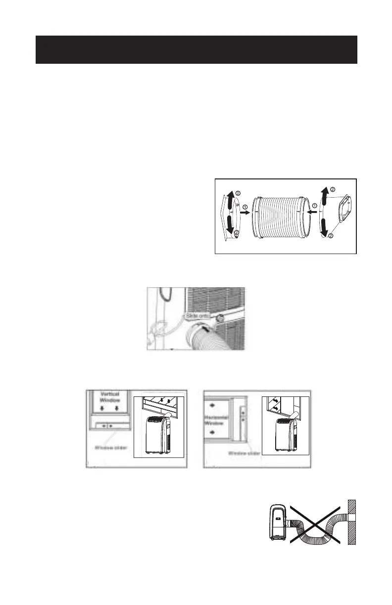 The air exhaust hose and hose inlet must be installed or removed from the portable