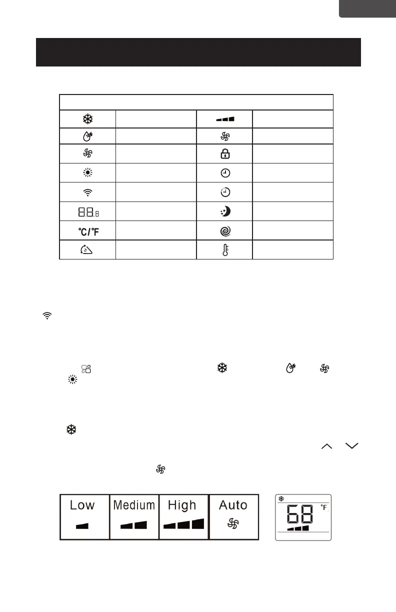 • The corresponding symbol will illuminate on the LED display to indicate which