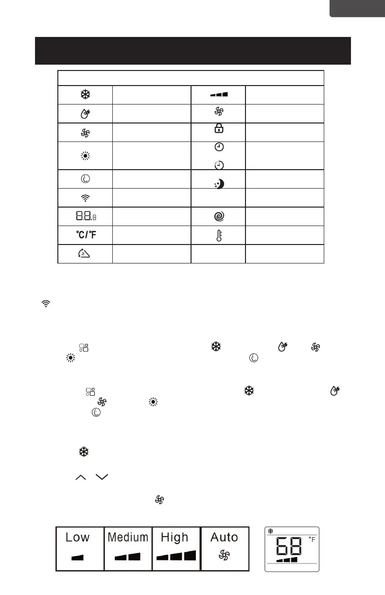 • El símbolo correspondiente se iluminará en la pantalla LED para indicar qué
