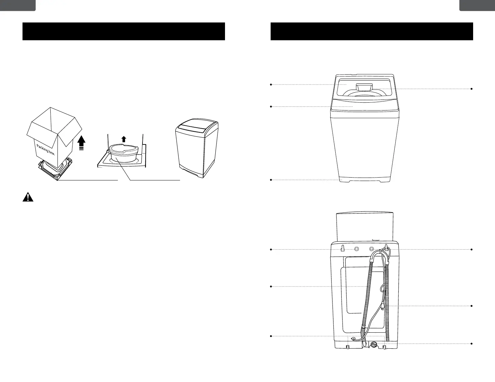 base en mousse. Ouvrez le couvercle de la laveuse pour enlever tous les accessoires,